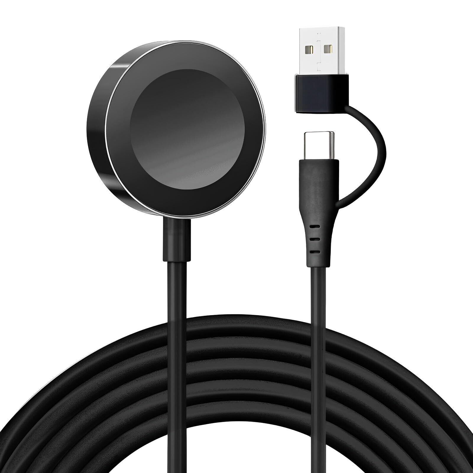 【2025新設計】POLINK 2in1 USB A+C for アップルウォッチ 充電器 Apple Watch 充電器 充電ケーブル ワイヤレス 充電機 マグネット式充電ケーブル 持ち運び便利 軽量 急速充電器 Apple Watch Series10/9/8/7/6/5/4/3/2/1/SE/Ultra 対応 USB-A&C ブラック