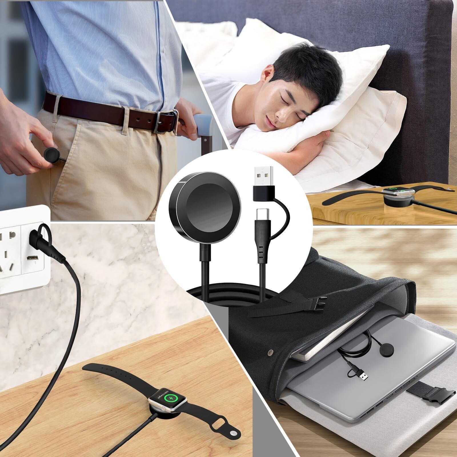 【持ち運び便利&使用簡単】アップルウォッチ充電器 USB A&Cは極薄の超軽量設計を採用しており、全体的にも非常に小型で、通勤、出張、旅行などに持ち運びすごく便利です。付属のUSBコードを電源に差し込み、充電器にウォッチを置くだけで自動的に吸着して充電が始まります。磁気充電タイプでピッタリとつき、充電中の落下を防止できます。