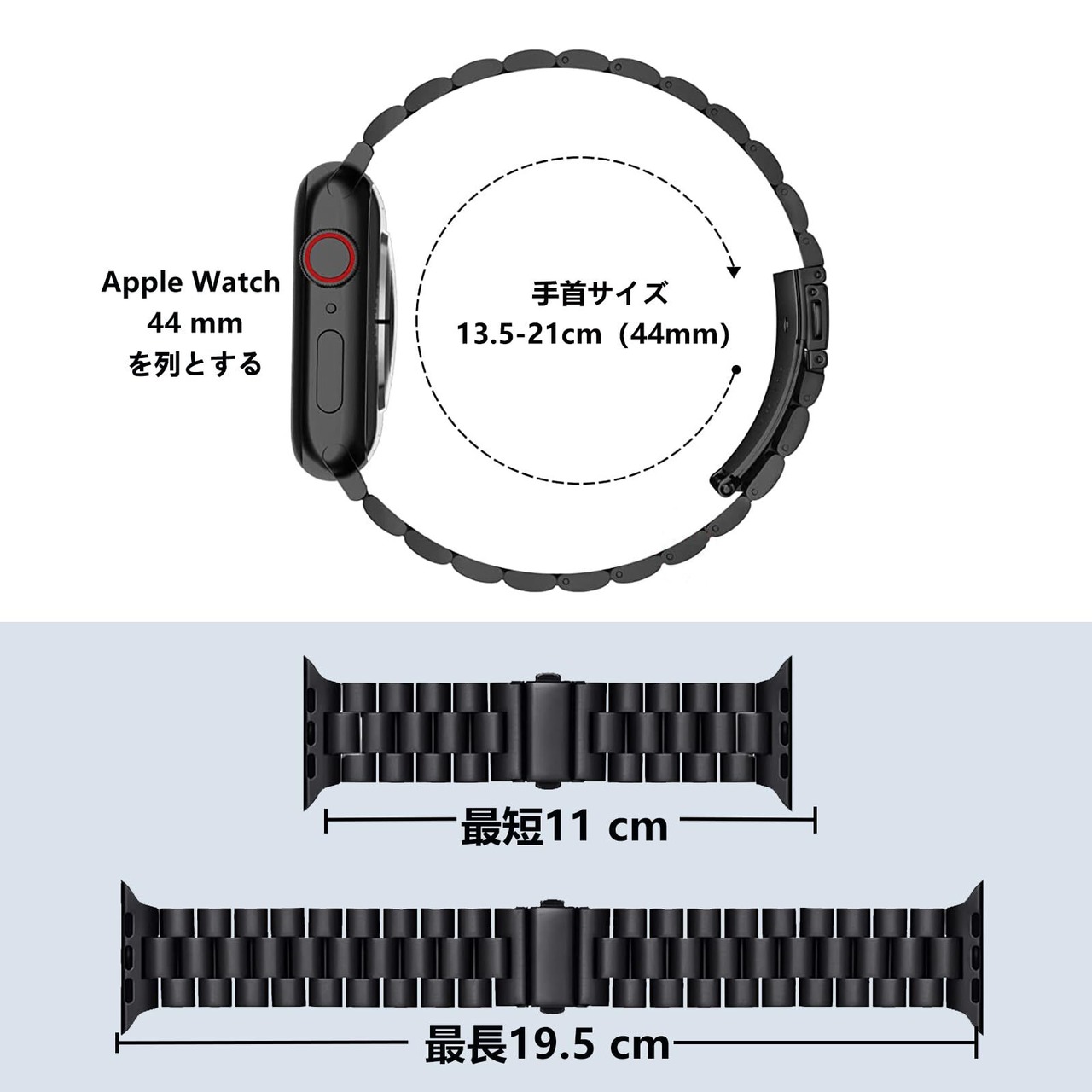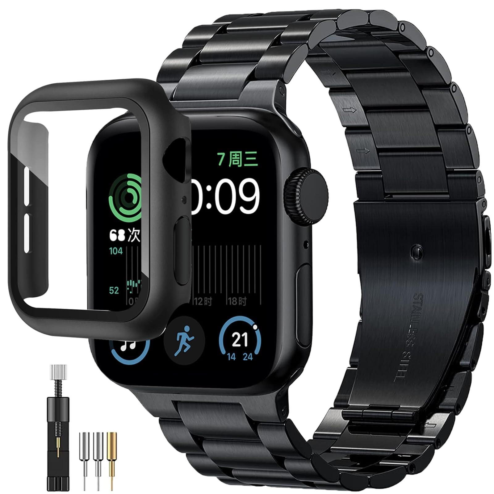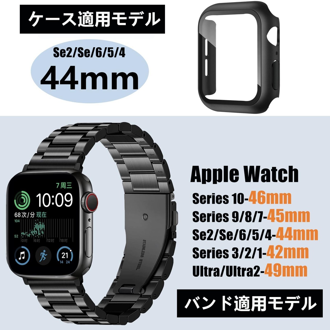 [FALSAD] 新型 Apple Watchバンド ステンレス 46mm/42mm/44mm/40mm/45mm/41mm保護ケース付き 対応 Se/Se2/Series10/9/8/7/6/5/4 アップルウォッチ 交換バンド,iwatch メタル 金属 長さ調整器具付き メンズ レディース兼用ベルト ビジネス 通勤(44mm ブラック)