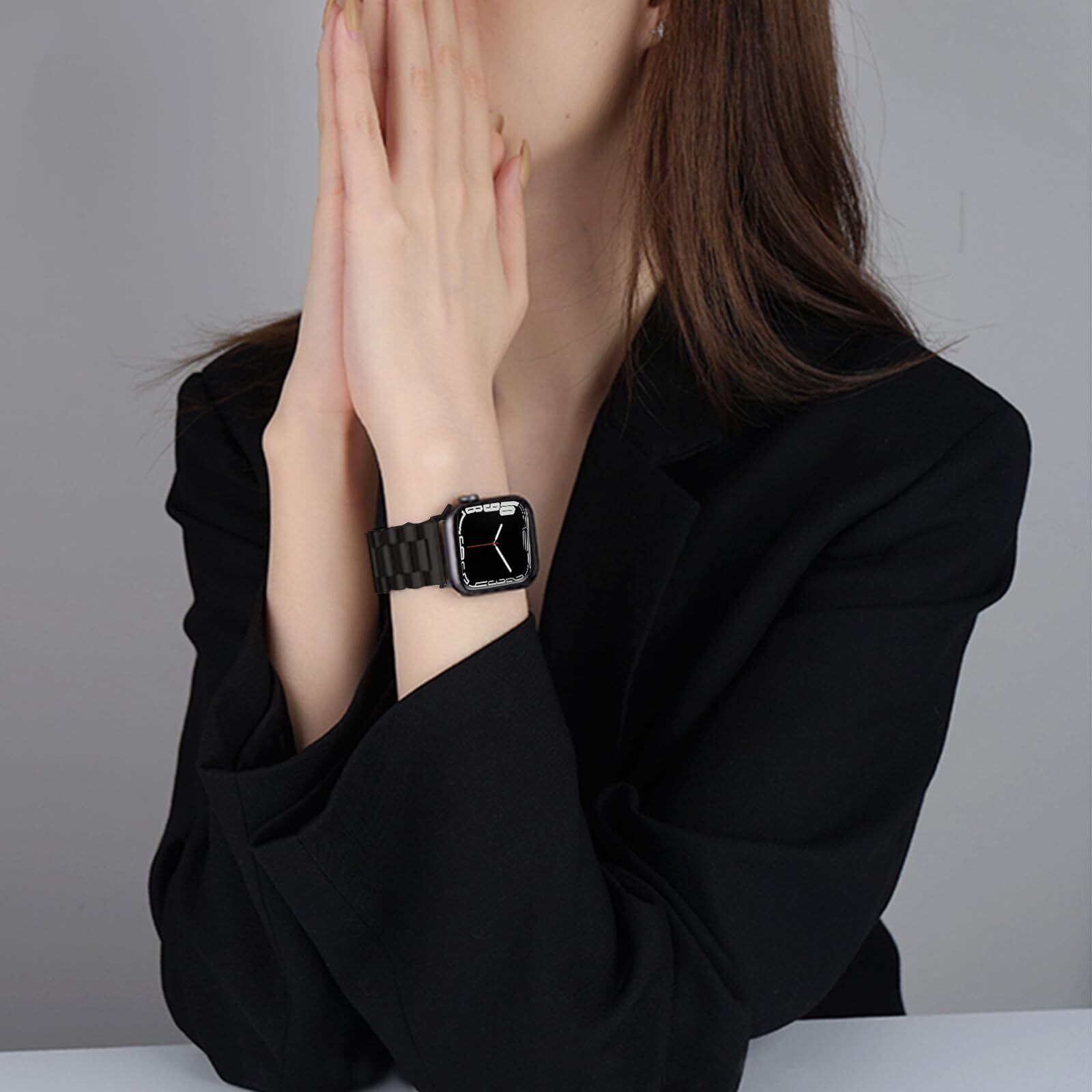 【保護ケース付き】PC素材と硬度強化ガラスで作成された 一体型 apple watch カバー。360度で腕時計を落下衝撃や傷から全面的に保護。バンド横3列になったコマを縦に繋ぎ合わせたブレスレットで、高い堅牢性を持っています。ほとんどの時計メーカーで採用されている3コマモデルで、金属ブレスとしては一番オーソドックスなタイプになります。