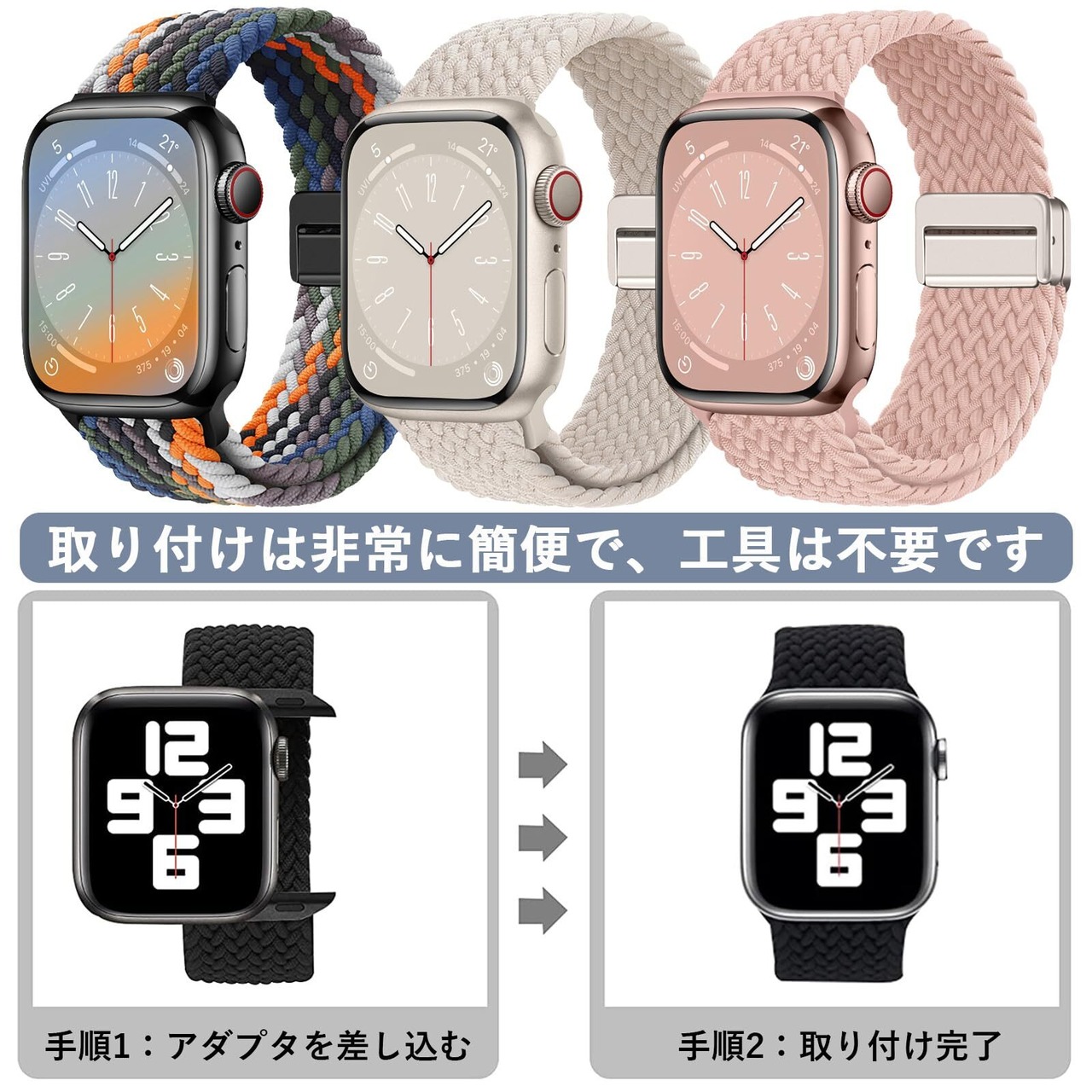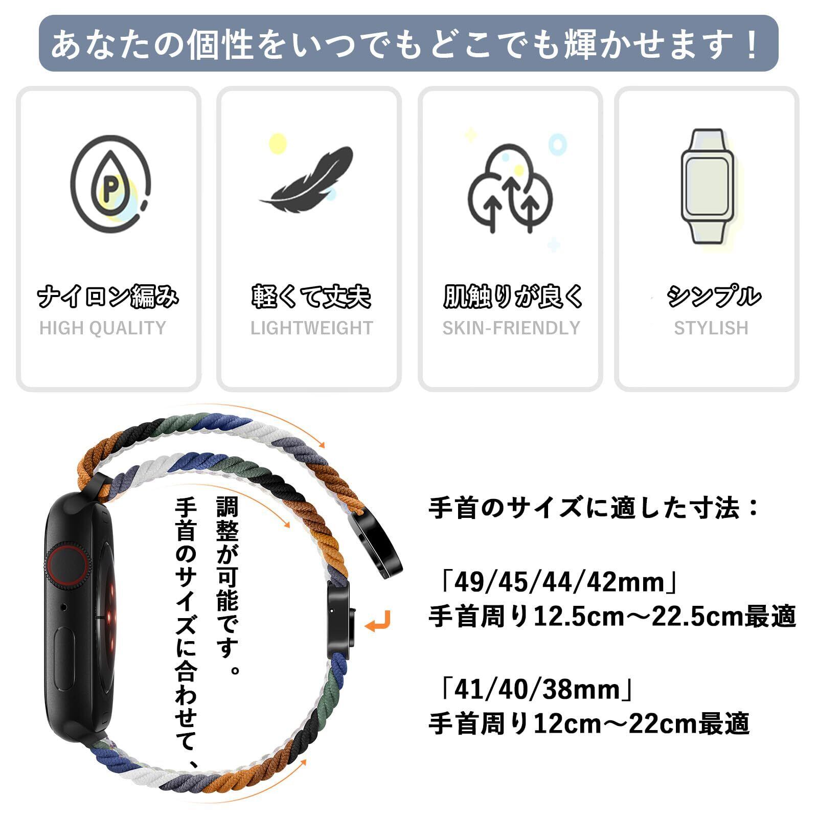 【新着商品】[Sunhel] コンパチブル アップルウォッチ バンド Apple Watch バンド 49mm 46mm 45mm 44mm 42mm 41mm 40mm 38mm 磁気吸着式バックル 強力な磁石 サイズ調整が簡単 ナイロン素材 編み込み ソロループ 伸縮性 対応 Apple Watch Series Ultra SE 10 9 8 7 6 5 4 3 2 1