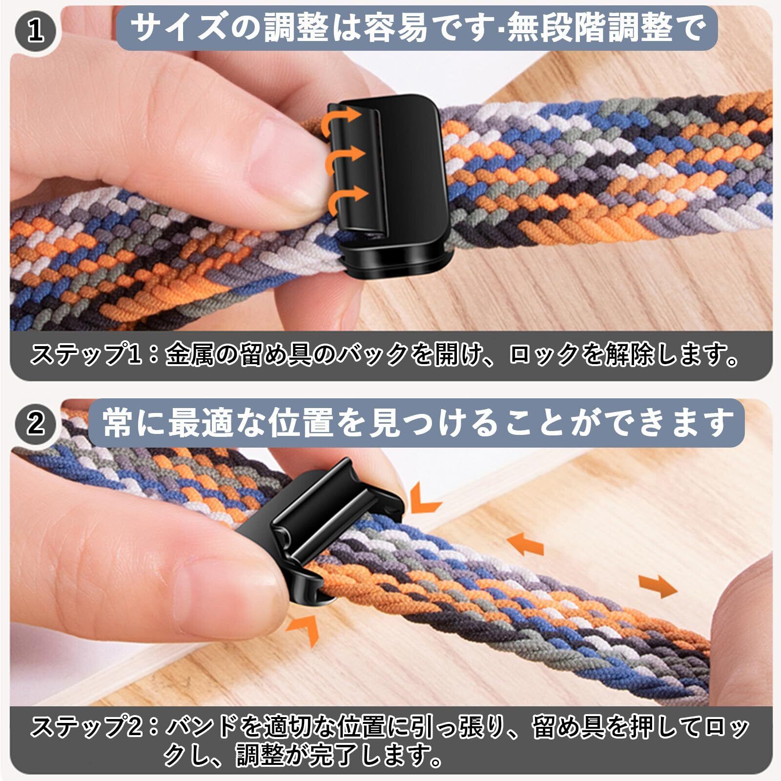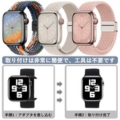 [Sunhel] コンパチブル アップルウォッチ バンド Apple Watch バンド 49mm 46mm 45mm 44mm 42mm 41mm 40mm 38mm 磁気吸着式バックル 強力な磁石 サイズ調整が簡単 ナイロン素材 編み込み ソロループ 伸縮性 対応 Apple Watch Series Ultra SE 10 9 8 7 6 5 4 3 2 1