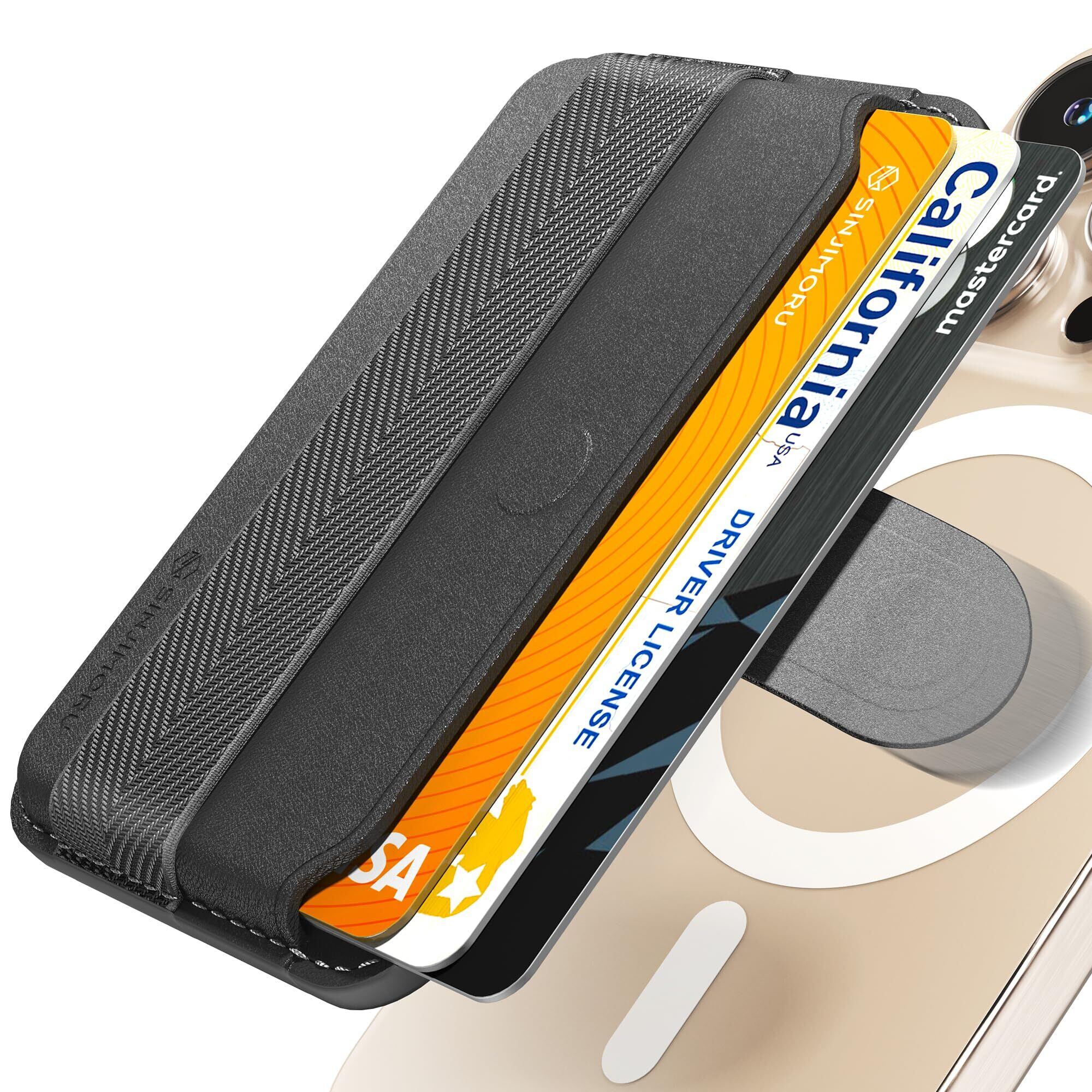 [Sinjimoru] プル & スライド magsafe対応 カードケース, フィンガーグリップ 付き, タプを引いて取り出す スマホカードケース, カード3枚収納 マグセーフ 財布, iPhone 16/15/14/13/12 シリーズ対応, M-Pull Tab Band ブラック