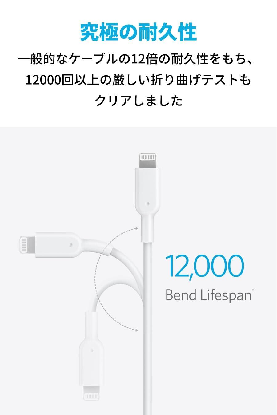究極の耐久性:一般的なケーブルより12倍以上の耐久性をもち、12000回以上の厳しい折り曲げテストもクリアしました