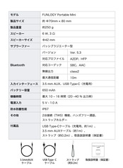 【商品仕様】(本体)サイズ:W 70 mm × D 70 mm × H 80 mm / 重量:250 g / スピーカーユニット:42 mm / 出力:6 W / インピーダンス:3 Ω / SN比:100 dB / Bluetooth:ver. 5.3 / 最大通信距離: 10 m(障害物が無い時) / 入力インターフェース:USB Type-C、AUX / 電源:DC 5 V 1.0 A / バッテリー容量:650 mAh / 稼働時間:10 時間(40 % 出力時) / 防水性能:IP67 / その他:TWS、ハンズフリー通話 / 付属品:USB Type-Cケーブル(1m)、3.5mm AUXケーブル(1m)、ストラップホルダー(約0.2m) 取扱説明書