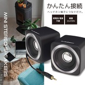 【 仕 様 】 ◆型式:パッシブ型スピーカー(φ50mm×2) ◆出力:0.5W×2 ◆周波数帯域:50Hz~20kHz ◆インピーダンス:8Ω ◆入力:φ3.5mmステレオミニプラグ ◆外形寸法:幅72×高さ72×奥行64mm(突起物除く、スピーカー1個あたり) ◆質量:約250g(コード含む) ◆コード長:約105cm
