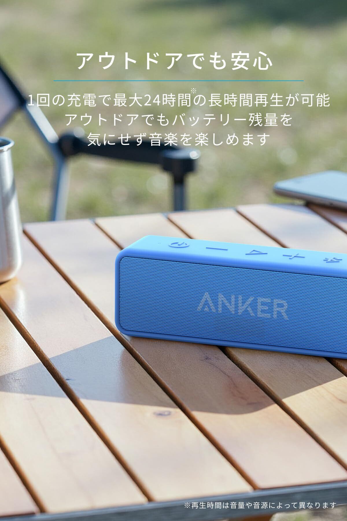 Anker Soundcore 2 (USB Type-C充電 12W Bluetooth 5.0 スピーカー 24時間連続再生)【完全ワイヤレスステレオ対応/強化された低音 / IPX7防水規格 / デュアルドライバー/マイク内蔵】(ブルー)