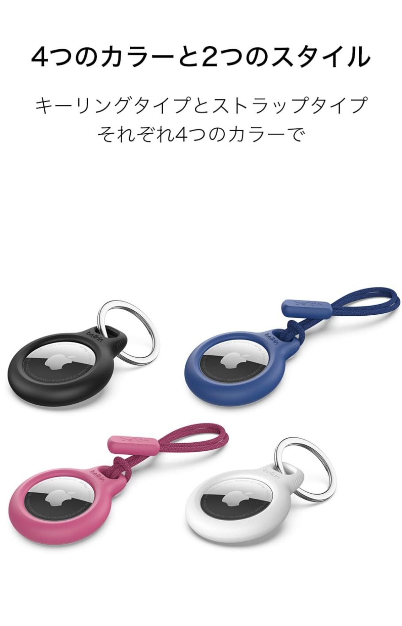 【Apple公認】Belkin AirTagケース 保護カバー 防水 自転車 財布 子供 安全 紛失防止 盗難防止 傷防止 犬 猫 ストラップ ブラック F8W974btBLK