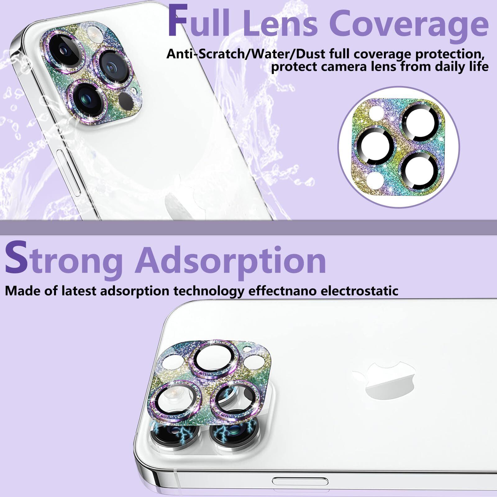 WoPail カメラフィルム iPhone 15 Pro/iPhone 15 Pro Max 対応 カメラカバー 強化ガラス+アルミ合金 カメラ保護 キラキラ レンズカバー 全面保護 キズ防止 耐衝撃 高透過率 貼り付け簡単 アイフォン15プロ/アイフォン15プロマックス 用 レンズ保護 (カラー)