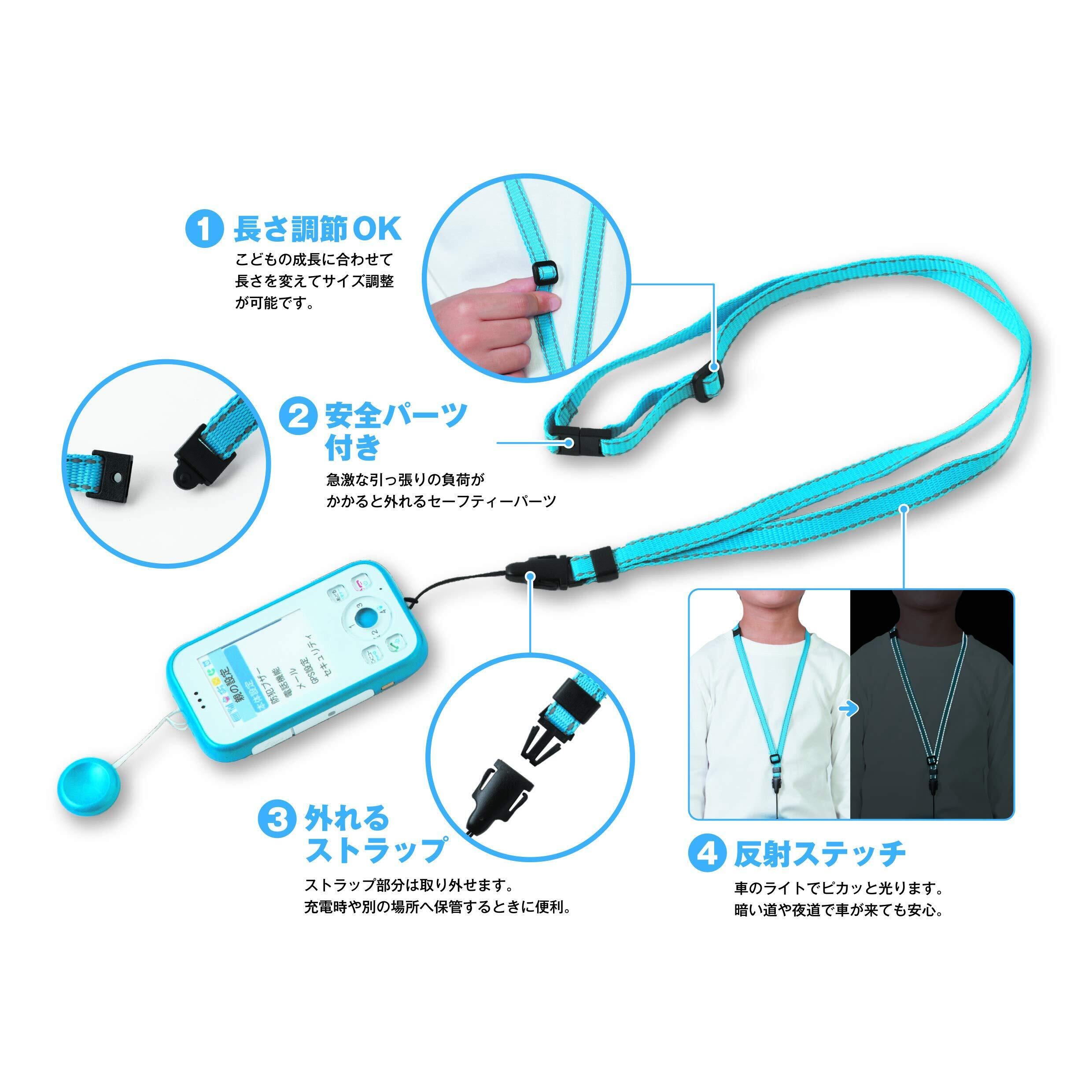 お子様の成長に合わせて長さを調節できます。ライトに反射するので夜道も安心。