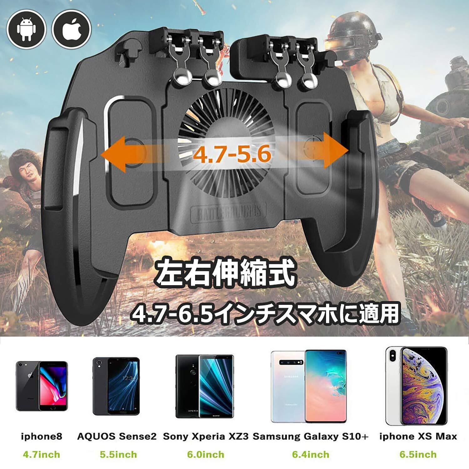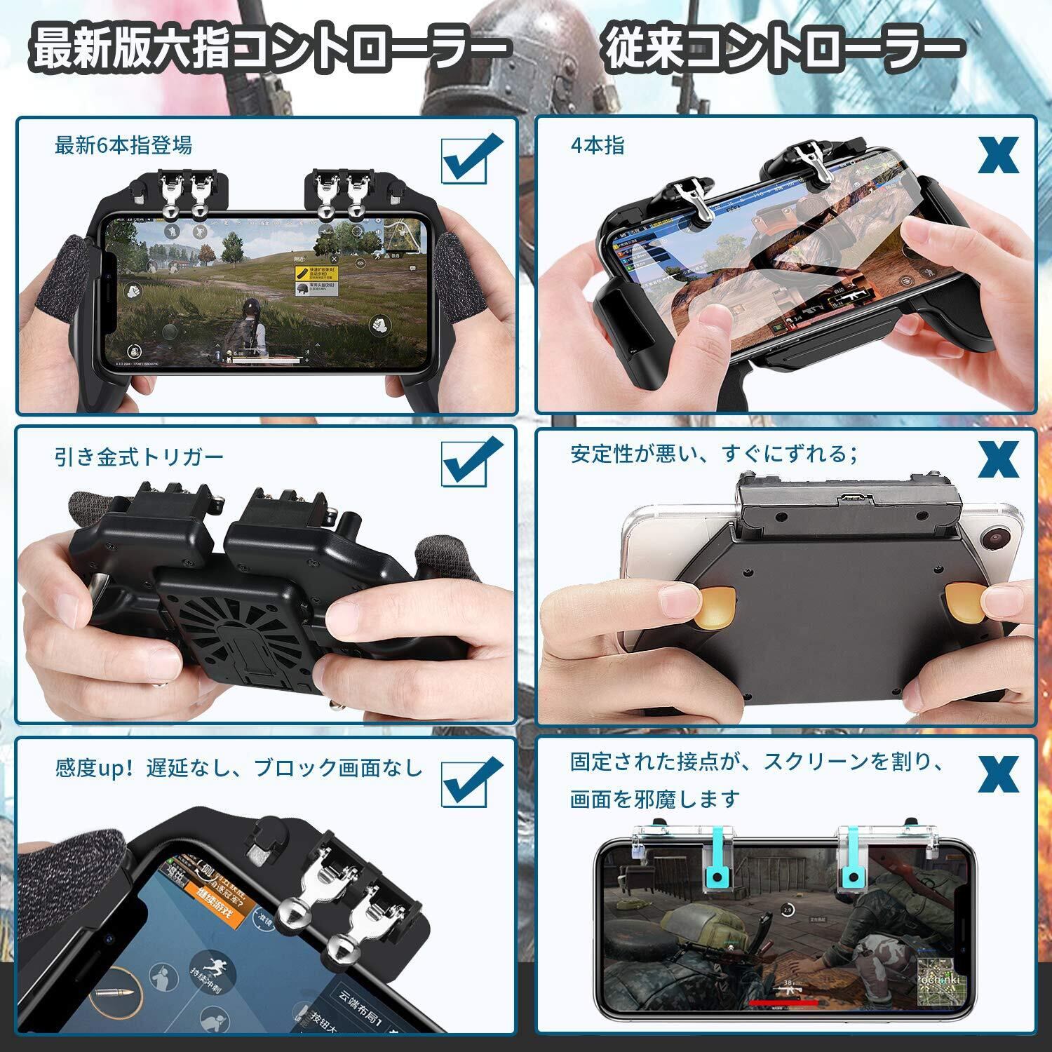 PUBG Mobile 【最新6本指】 荒野行動 コントローラー 6本指 伸縮調節可能 冷却ファン付き 引き金式 高感度 高速射撃 一体式 クリック感 ゲーム体験 iPhone/Android ゲーム対応 指サック 4枚入り (6本指) (1)
