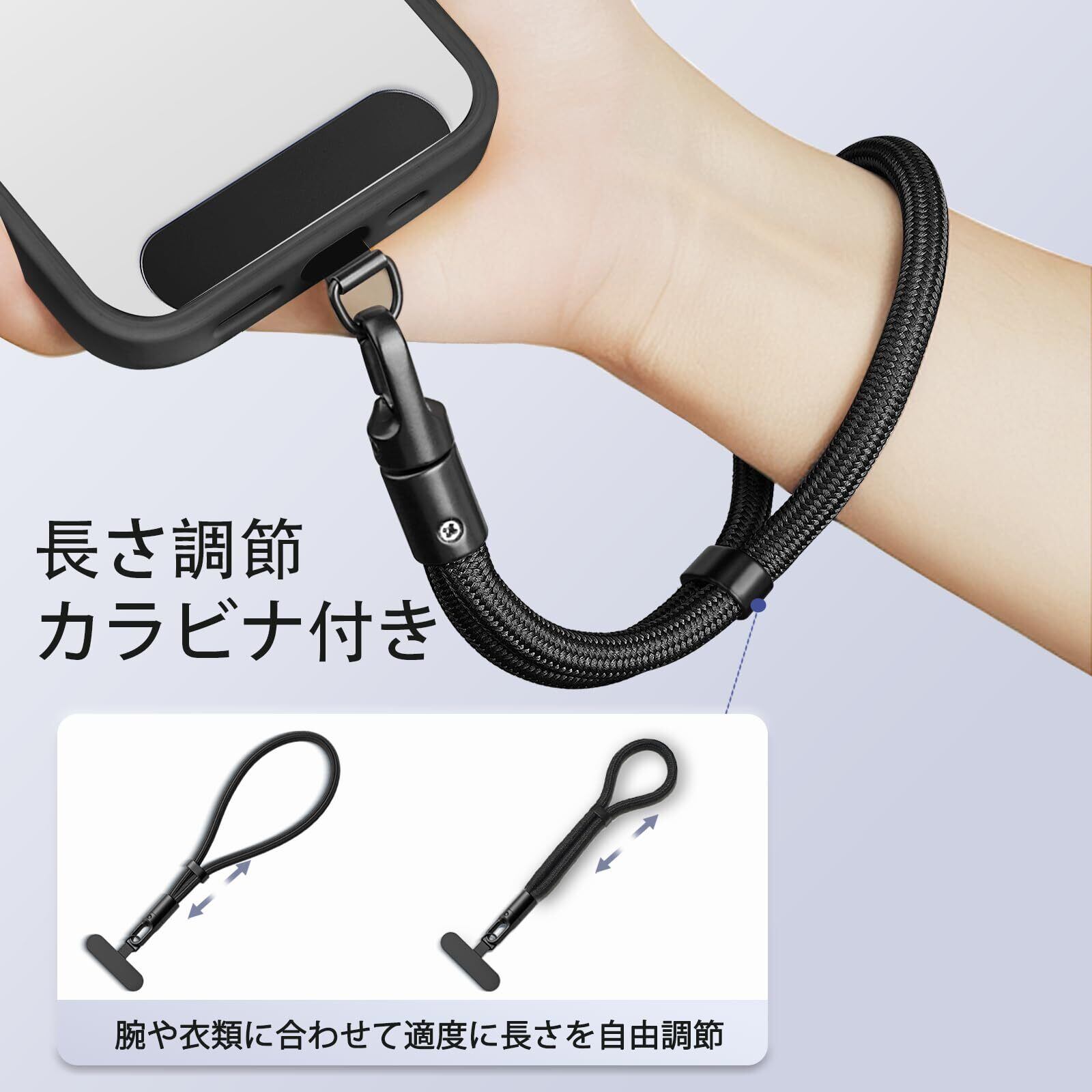 [Lamiishop] スマホストラップ 手首 スマホ ハンドストラップ 長さ調節可能 ストラップホルダー付き 携帯ストラップ 360°回転 7mm太さナイロンロープ スマホ 落下防止 スマホ スリ対策 鍵/携帯/財布 紛失防止 長さ20cm
