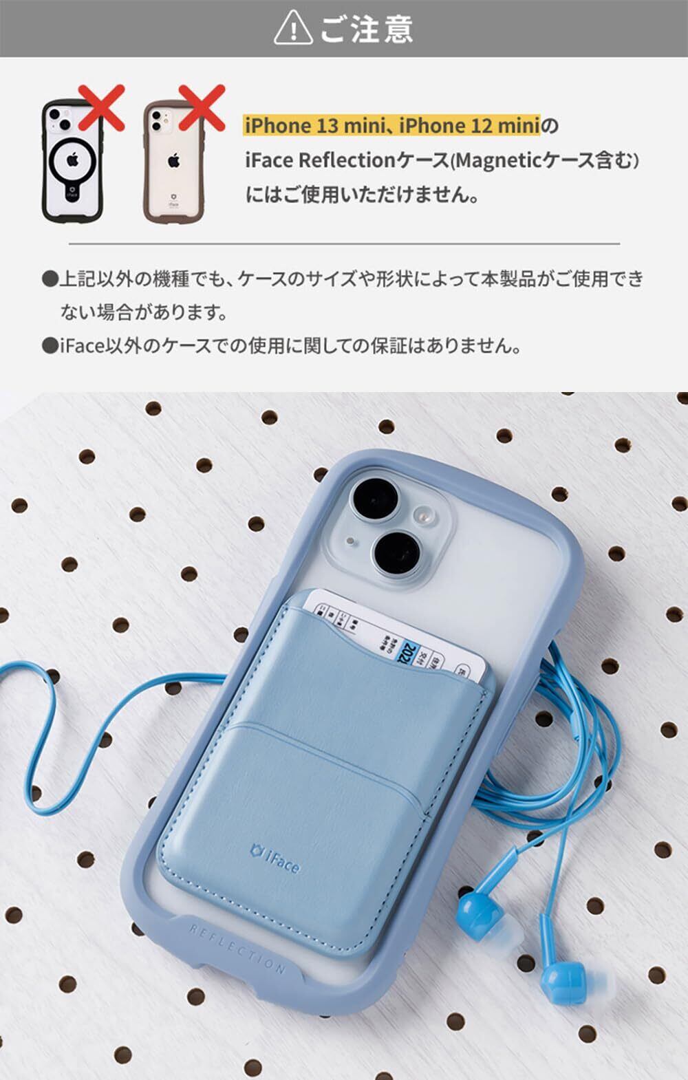 【対象機種】MagSafe対応のiPhone、MagSafe対応のiFaceブランドケース。※iPhone 13mini、iPhone 12mini用のiFace Reflectionケース(Magneticケース含む)にはご使用いただけません。※上記以外の機種でも、ケースのサイズや形状によって本製品がご使用できない場合があります。※iFace以外のケースでの使用に関してのはありません。