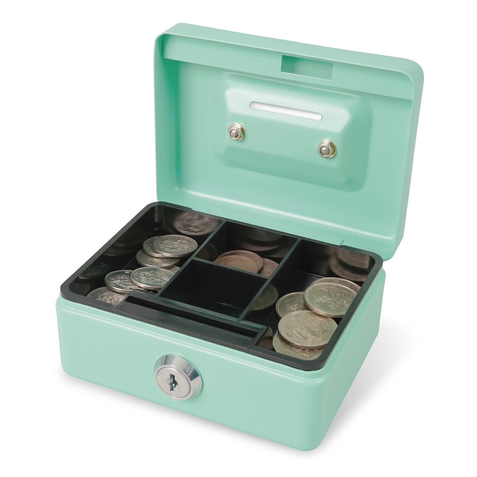 カール事務器(CARL) おこづかいばこ 日本メーカー 金庫型 貯金箱 家庭用 教育 学習 小銭 収納 鍵付き スチール製 A7 ライトグリーン CB-8050-U