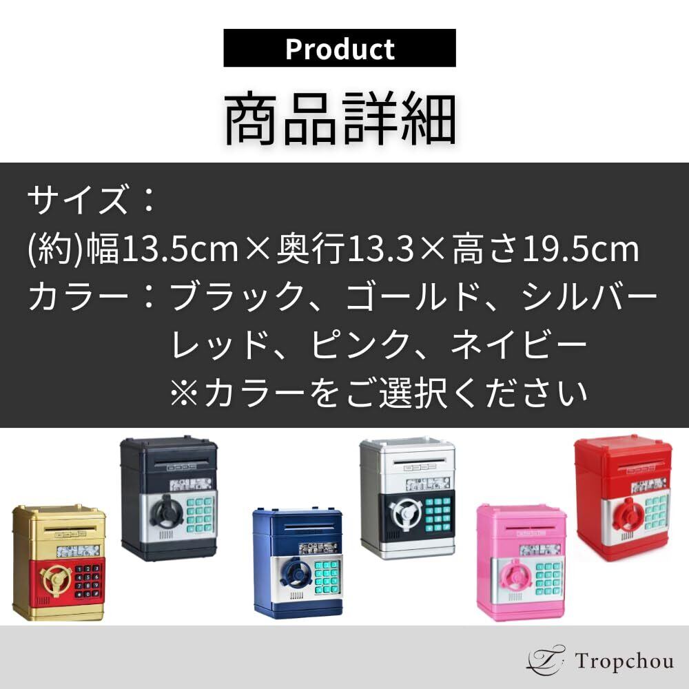 【数量限定】Tropchou 貯金箱 ダイヤルロック式 ATM セキュリティ パスワード バンク お札 小銭 貯金 自動 (ブラック)