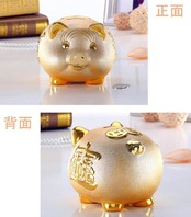 【新着商品】[Queen-b] ブタ 貯金箱 金色 インテリア 開運 金運 アップ ラッキー アイテム 風水 バンク コイン お金 キャッシュ マネー ボックス ケース ゴールド (中)