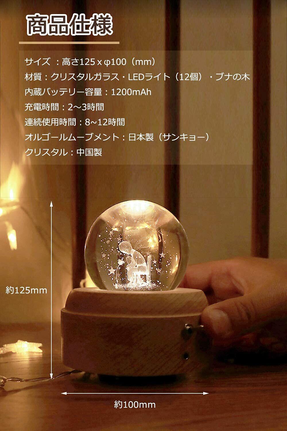 【夢に出てくる癒し感】LEDスタンドに乗せるとクリスタルの中の月が光り輝き、オルゴールの上に綺麗な花の投影も出て、幻想的な画像とオルゴールの音色で夜を素敵に演出してくれます