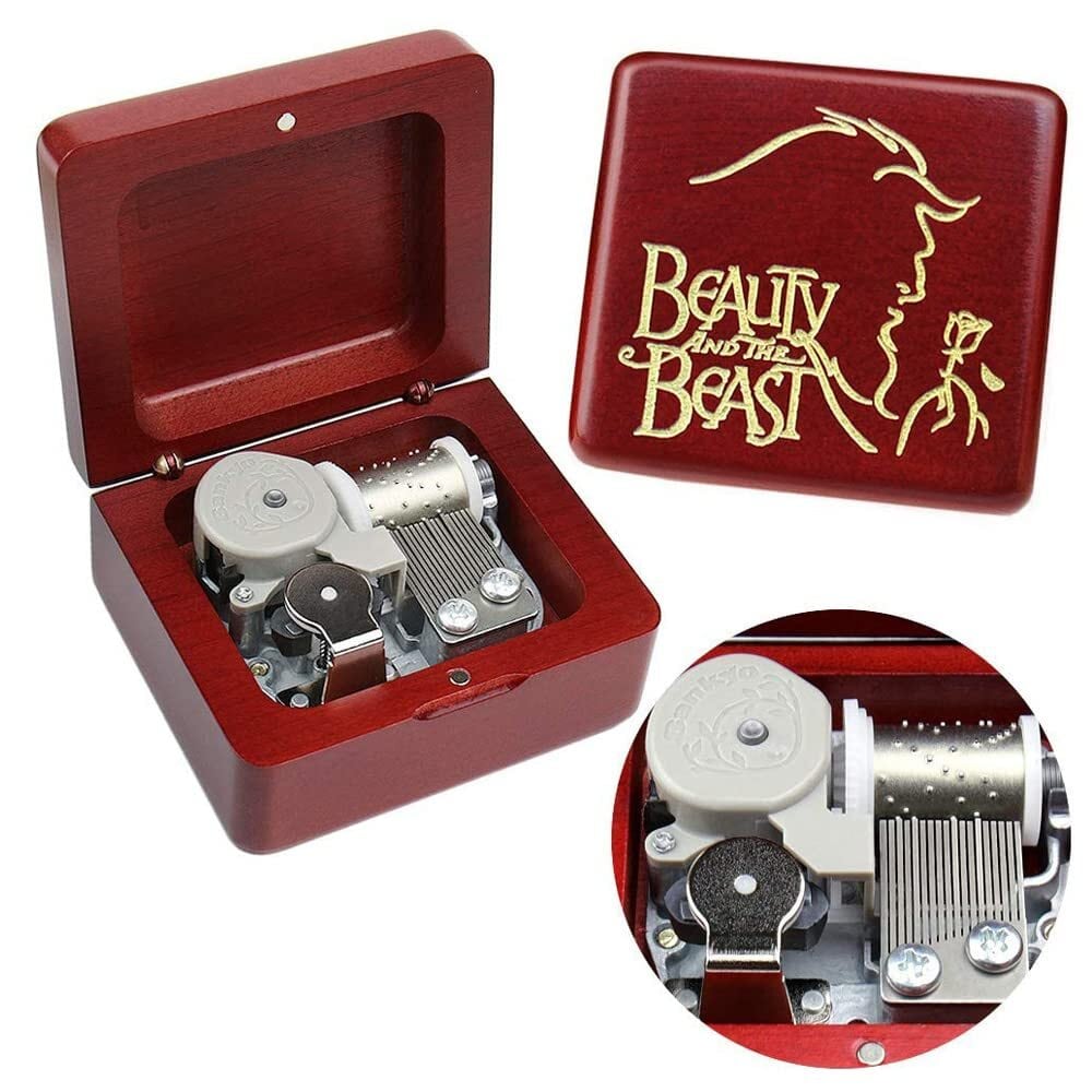 Sinzyoオルゴール 木製ハンドヘルド ミュージックボックス 記念日、誕生日、祝いに、子供の友人へのプレゼントにも (ワインレッド 曲:Beauty and the beast)