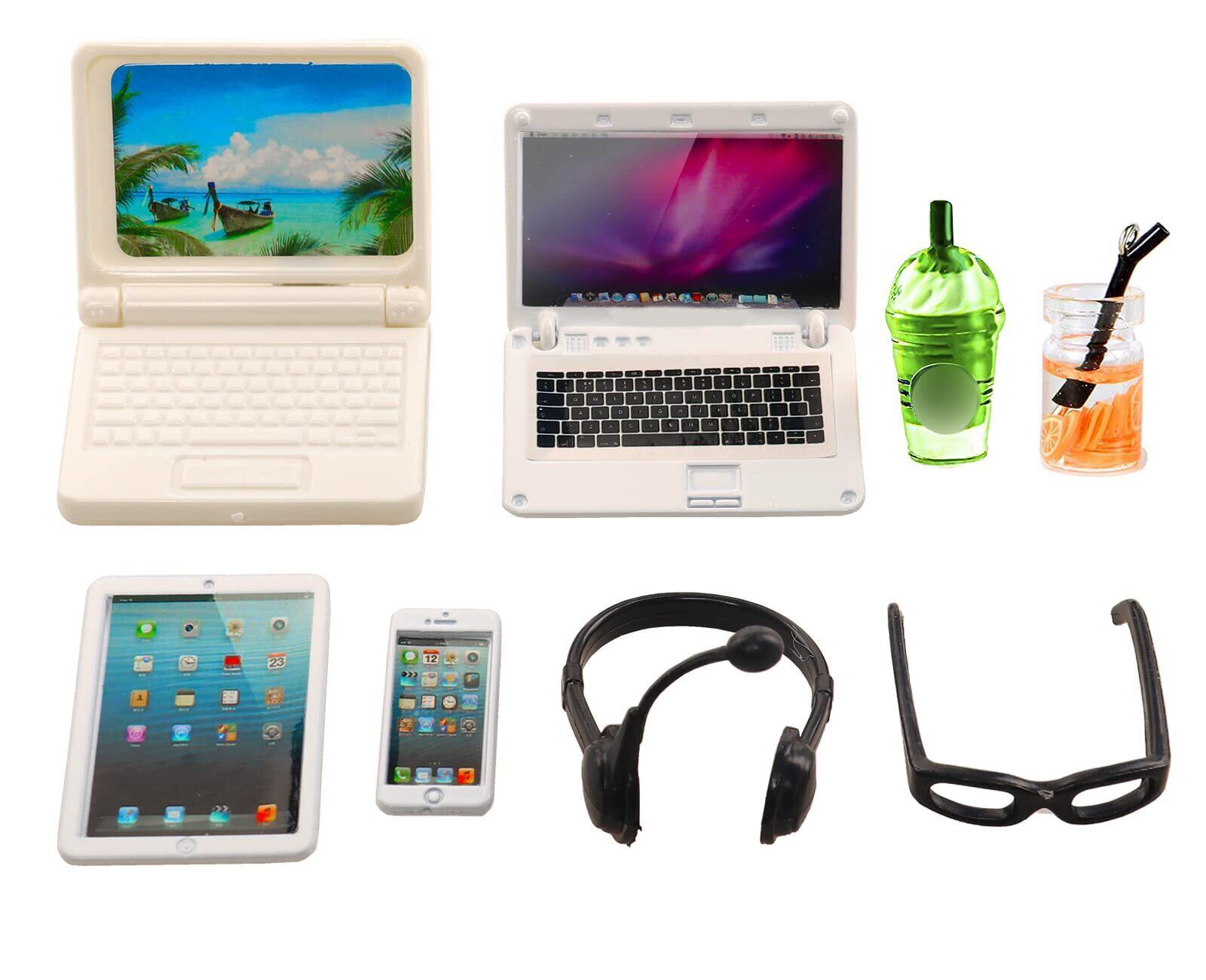 Barwawa 30cmドール用パソコン ドール用携帯電話 1/6人形用アクセサリー 6セット(ホワイト)