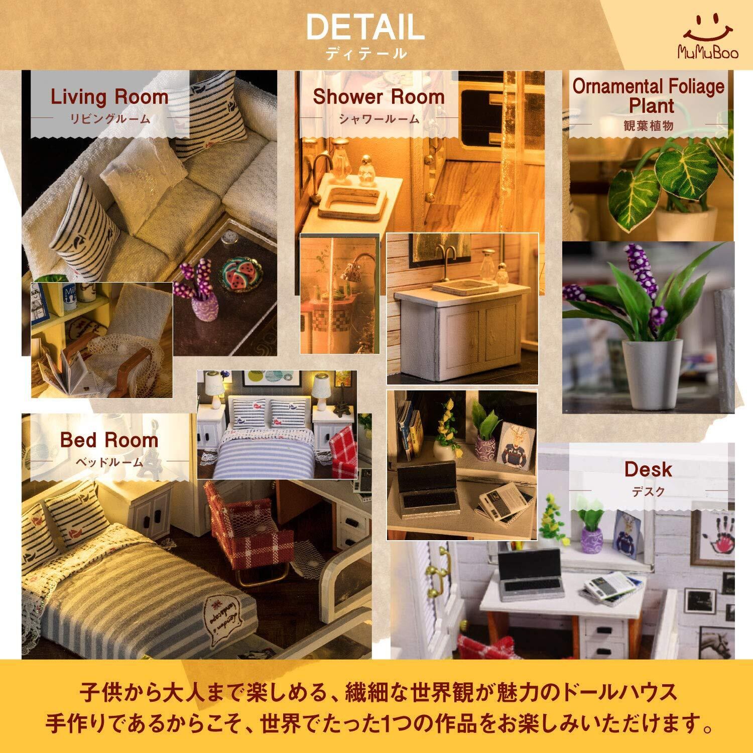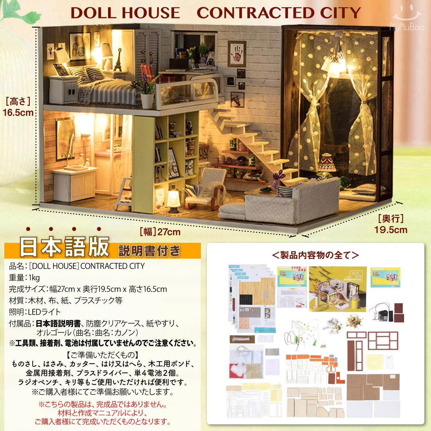 [MuMuBoo] ドールハウス 日本語説明書付 手作り ミニチュアキット ミニチュア家具キット DIY 木製 【 LEDライト オルゴール 防塵用ディスプレイカバー 付属 】 (CONTRACTED CITY)