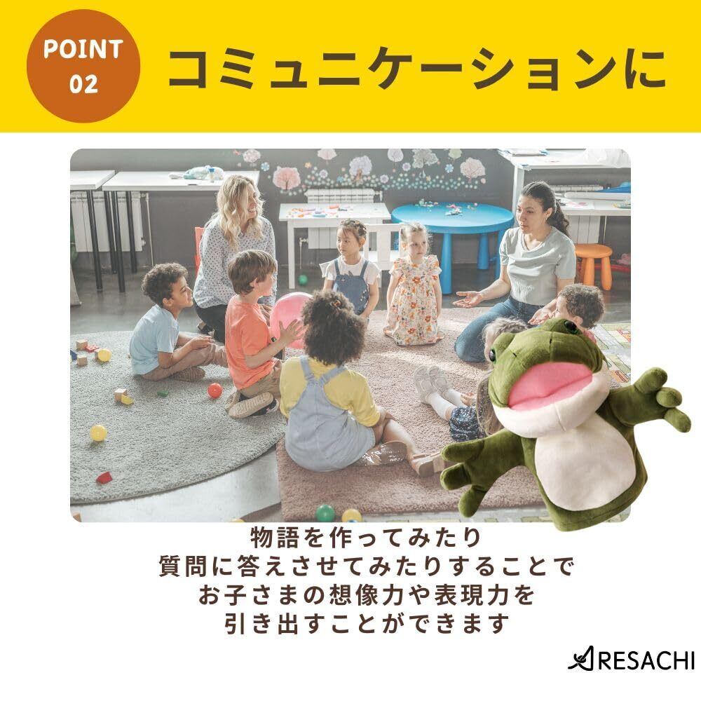 【楽しい遊び相手】カエルのパペットは、口を動かすことで会話や物語を楽しむことができます。手で操作するだけで簡単に動かせるので、小さなお子さまでもすぐに遊び方を覚えられます。人形劇やごっこ遊びなど、家族や友だちと一緒に笑顔あふれる時間を過ごせます。