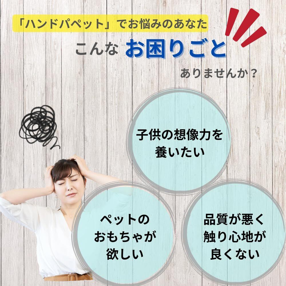 【ペットも喜ぶ遊び道具】ハンドパペットはペットとの遊びにも最適。愛犬や愛猫が興味を持ち、噛んだり引っ張ったりして遊ぶことで、家族全員で楽しむことができます。