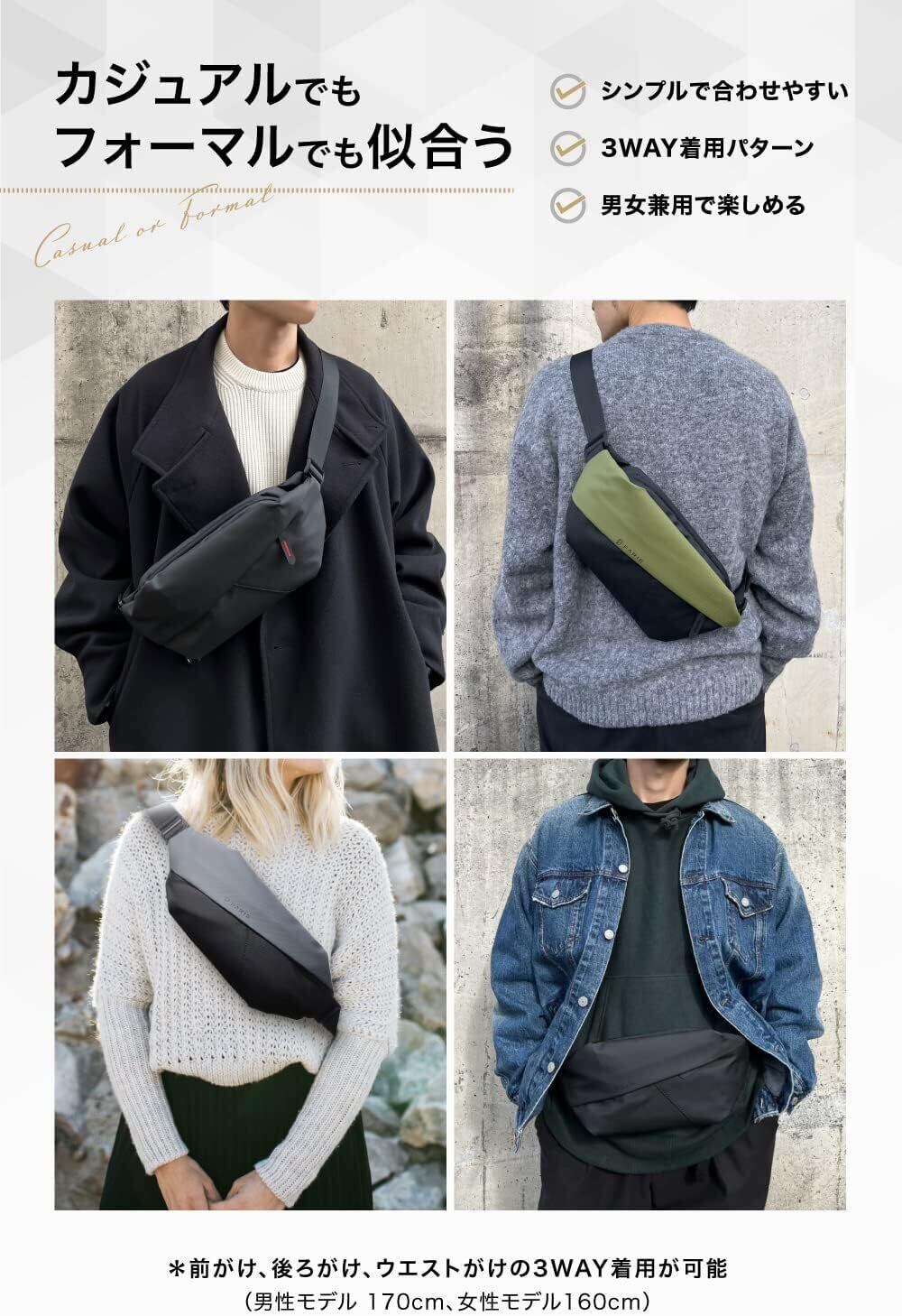 【機能的でもオジサンくさいのはイヤだ..】というお客様の声に応えたボディバッグ:意外とボディバッグに関しては、「おじさんくさい」「一昔前のデザイン」と思われるボディバッグが多かったりと、選び方が少し難しい部分もあるボディバッグ。時代や流行に左右されず、洗練されて、誰でも着けるだけで高見えするデザインを追い求めました。ユニセックスデザインのため、男性用 女性用 どちらも似合うデザイン。キッズや学生から 20代 30代 40代 50代ギフトやプレゼント用にも。また普段使いから海外旅行、ジム、ウォーキング、お散歩など幅広いシーンでも使えます。