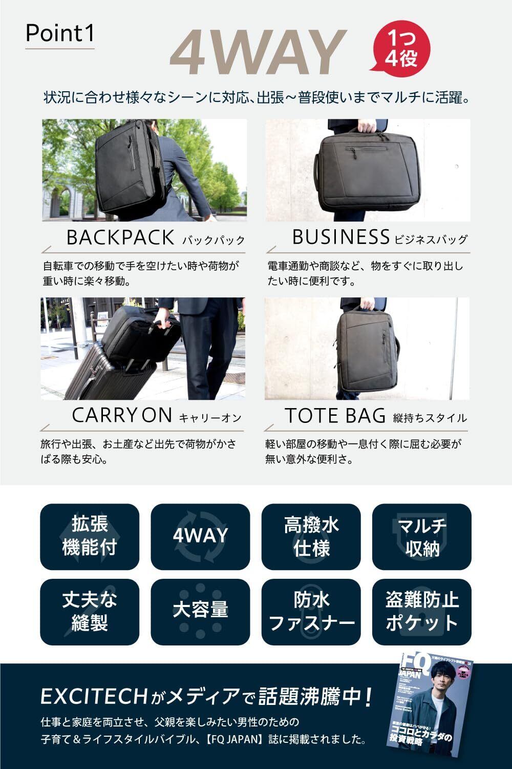 [EXCITECH Biz] ビジネスリュック 登山リュック 防水 止水ファスナー 撥水加工 ビジネスバッグ 39L 大容量 2way マチ拡張 17インチ PC 通勤 バックパック 出張 旅行 メンズ ギフト プレゼント