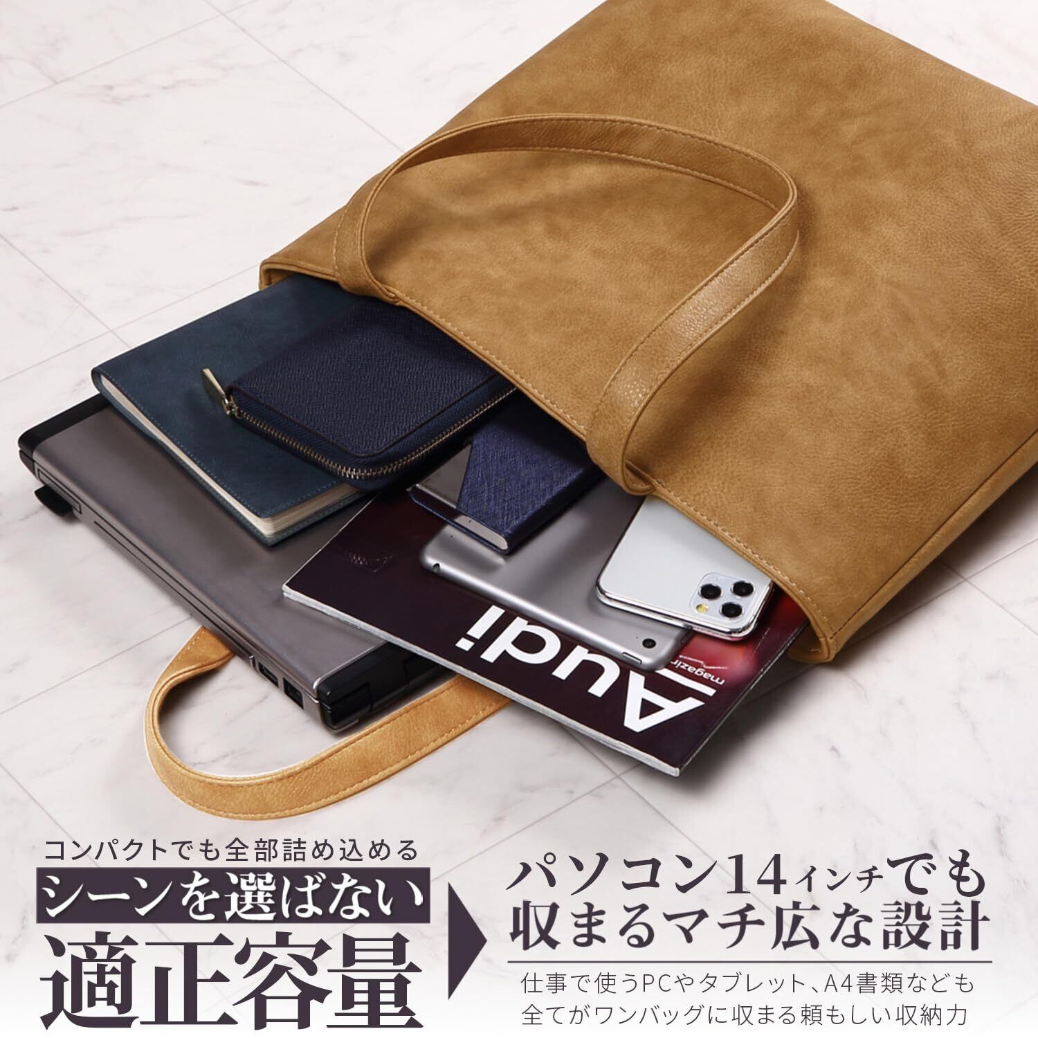 【厳選された質感とフォルム】上品で光沢を抑えたムラ模様のトートバッグです。シンプルさを求め、主張しすぎないオールマイティに使える”良い意味での脇役のバッグ”となってくれます。流行に左右されない”Simple is the best”という王道を貫き、男性女性問わず愛用していただけるデザインとなっています。”なめらかで光沢を抑えたマットなシンセティックレザー”を採用したことで、価格以上に見栄えする高コストパフォーマンスを実現しました。