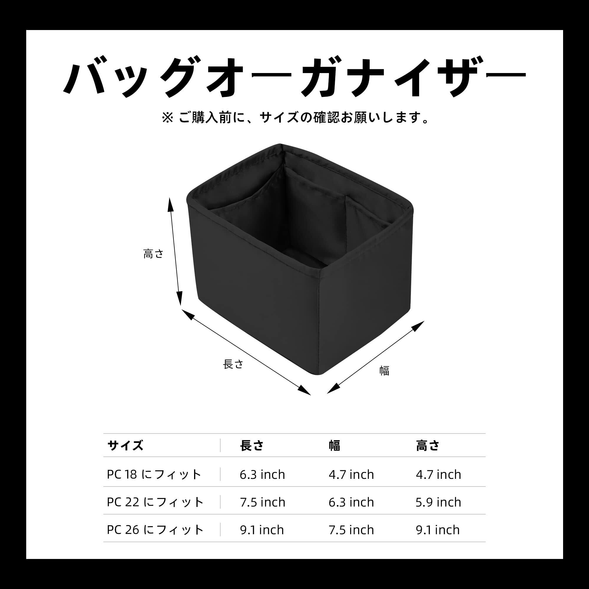 DGAZ バッグインナーバッグ インナーバッグ 高級シルク サテン トートバッグ用 picotin18/22Bags(ブラック、PC18)