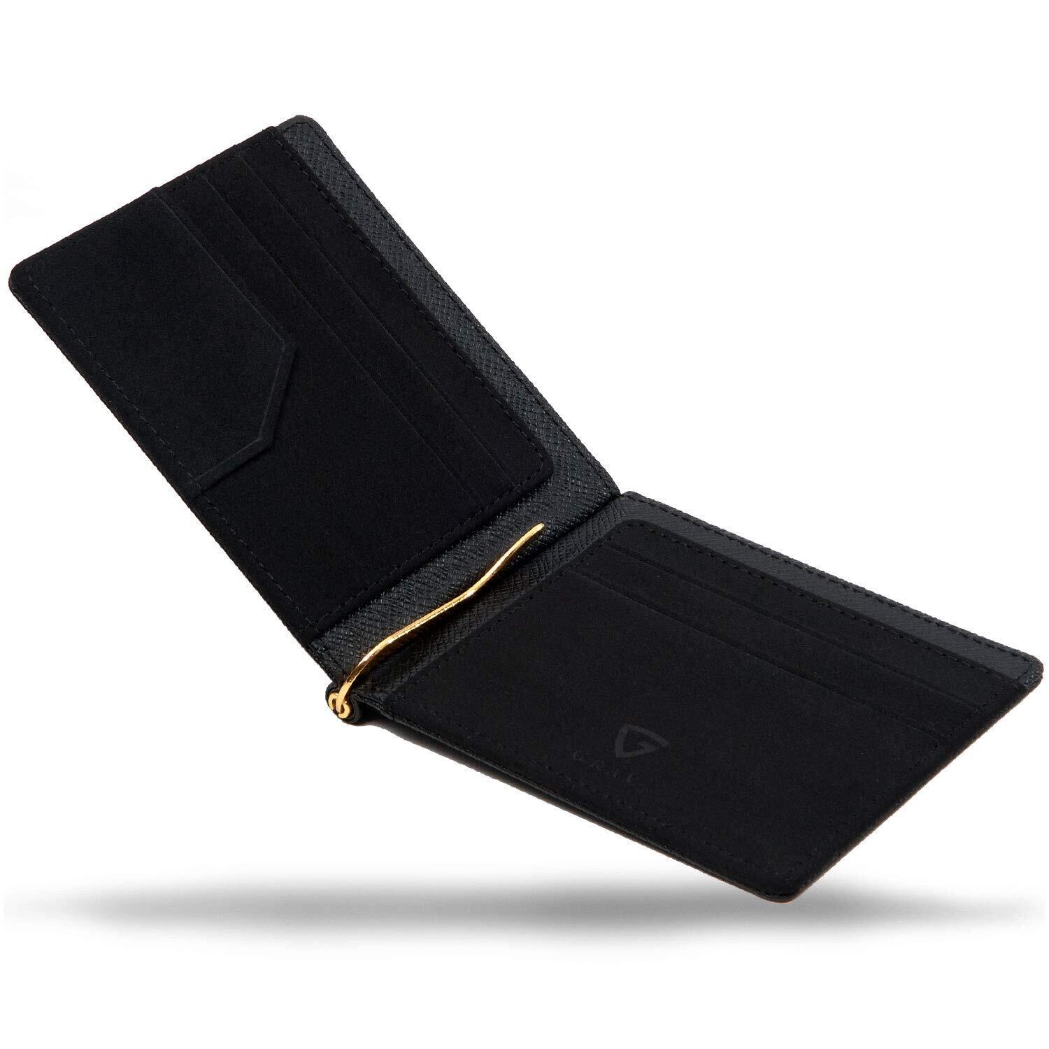 【数量限定】【GRAV】 マネークリップ メンズ カードケース 財布 二つ折り 札入れ 革(ICカードポケット 隠しポケット付き) (ブラック×ブラック)