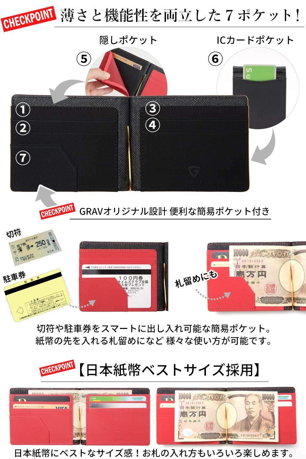 【 ありきたりなマネークリップじゃつまらない 】 コスパが優秀であることは大前提、所有欲を満たしてもらう商品に。 使いやすさにこだわった機能性豊かな7ポケットにオリジナル設計。 充実した収納力と鮮やかなデザイン性が洗練された大人の男性に相応しいマネークリップの登場です。