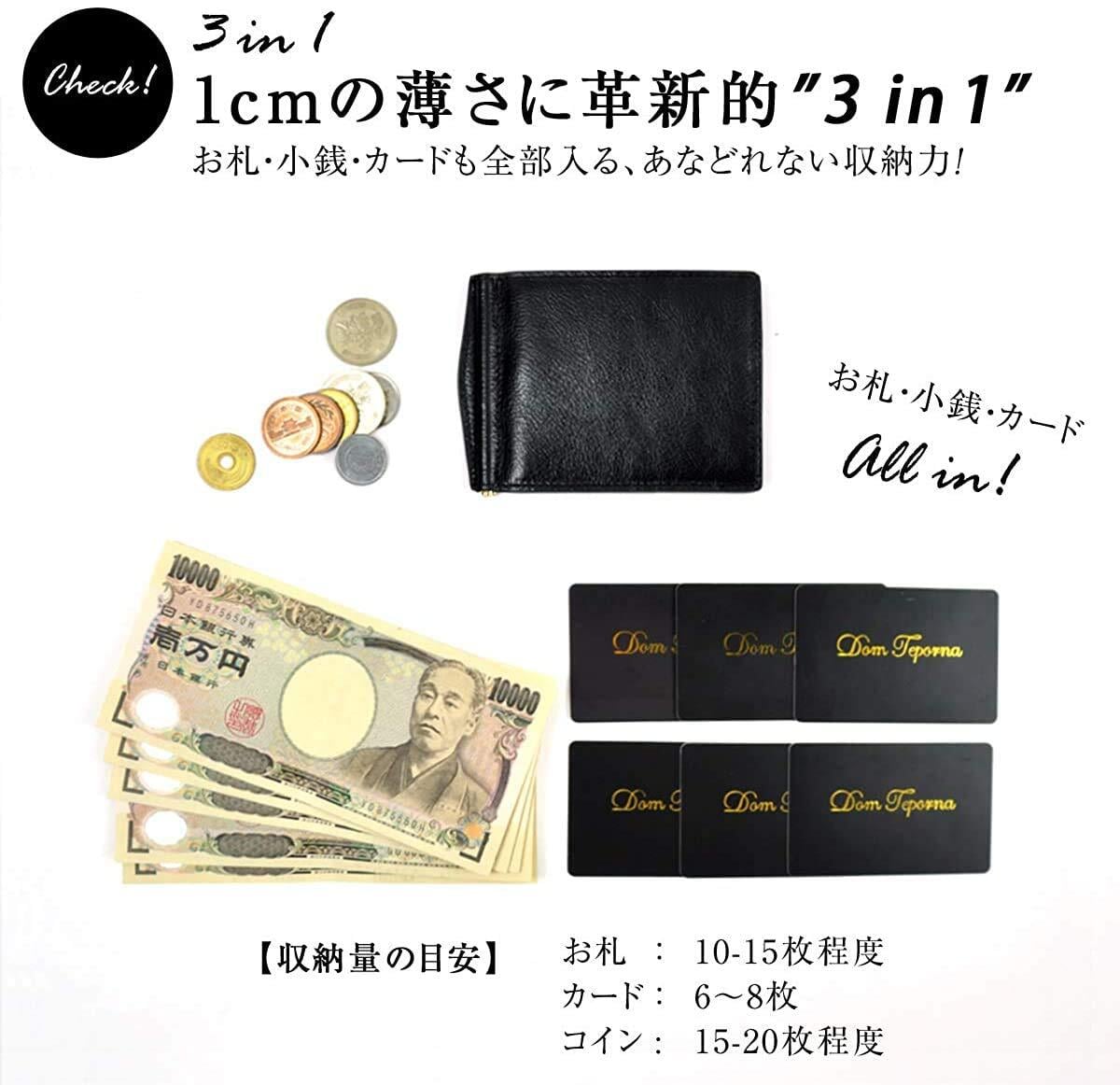 [Dom Teporna] マネークリップ メンズ 小銭入れ付き 本革 イタリアンレザー 薄型 二つ折り財布 札入れ 札バサミ カードケース ダークブラウン