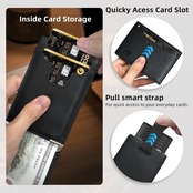 【大容量&使いやすさ】- コンパクト設計 親指でスライドするカード取り出し口とプルタブを採用し、よく使うカードに素早くアクセス可能。財布を開かずに最大7枚のカードを取り出せます!12枚以上のカード+20枚以上の紙幣を収納しながら、厚さわずか0.35インチ(約8.9mm)の超薄型設計でポケットでも目立ちません。