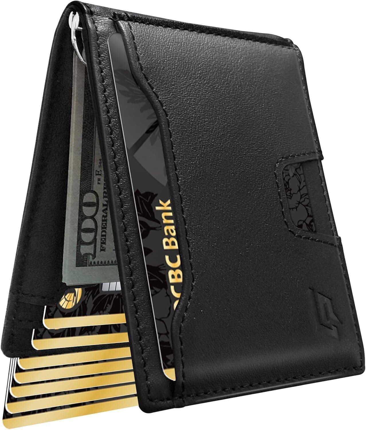 [ECOZATU] スリムミニマリスト財布 メンズ - マネークリップ 二つ折り RFIDブロッキング対応 | 本革財布 | 12カードホルダー 男性用財布 | メンズフロントポケット