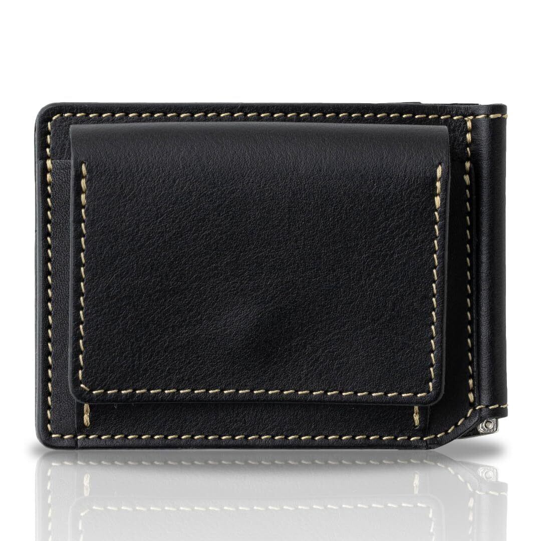 【人気商品】[グレオール] マネークリップ 小銭入れ付き 日本製 革 メンズ 財布 二つ折り 本革 レザー ギフトボックス付き ブラック糸配色 黒