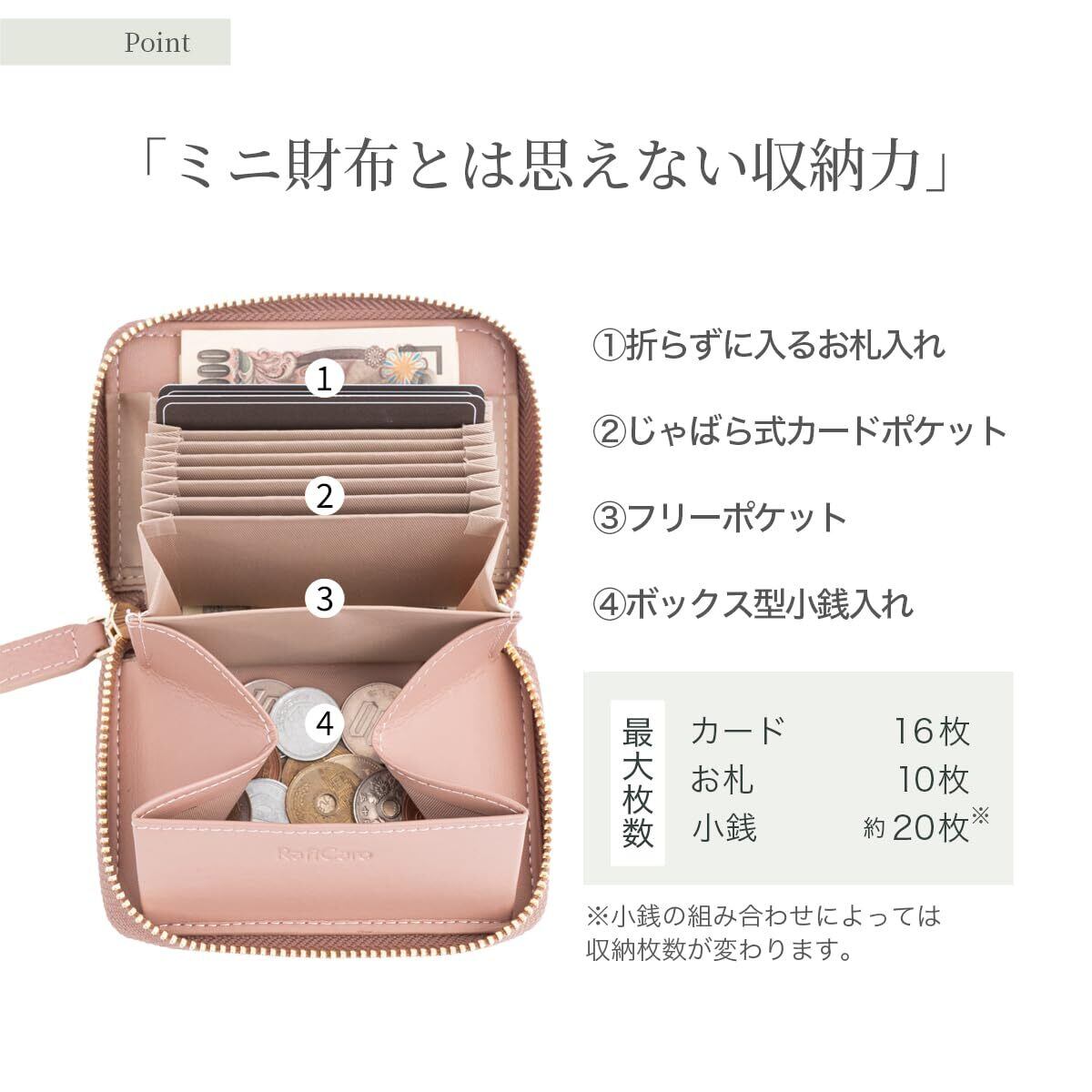 【在庫処分】[RafiCaro] ミニ財布 お札が折れない 財布 レディース メンズ 二つ折り財布 大容量 じゃばら カードケース ボックス型 小銭入れ YKKファスナー 牛革 小さい財布 グレージュ