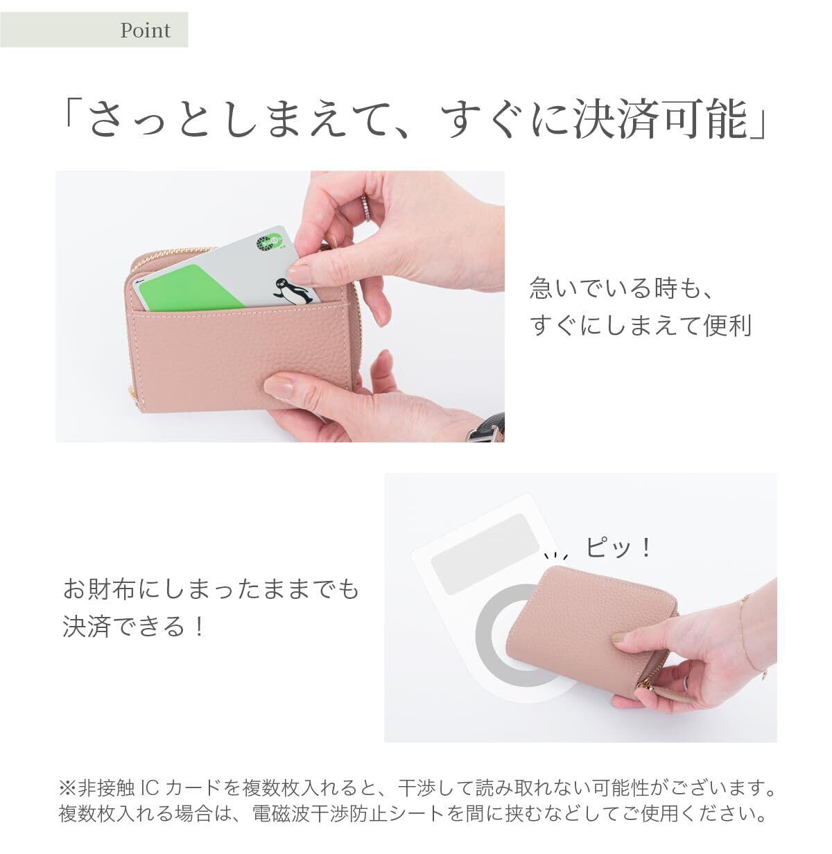 【カードも小銭もたっぷり収納】コンパクトなボディに、使いやすさのための工夫を詰め込みました。じゃばら式カードポケットでたっぷり大容量。ラウンドファスナーを開けば180度広がるので、使いたいカードが一目瞭然。小銭入れは便利なボックス型です。