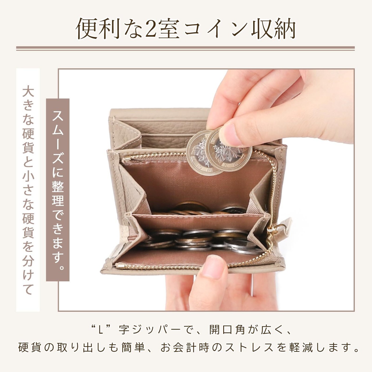 【使いやすい、効率的な収納】この二つ折り財布は、大きな硬貨と小さな硬貨を別々に収納できる仕切りが備わっています。おつりを探すのがより迅速になるだけでなく、L字型ファスナーを使った収納部は開口角が広く、硬貨を取り出しやすくなっています。さらに、7つのカード入れ、1つの札入れ、そして便利なオープンポケットも完備されており、日常の外出や旅行にも便利です。