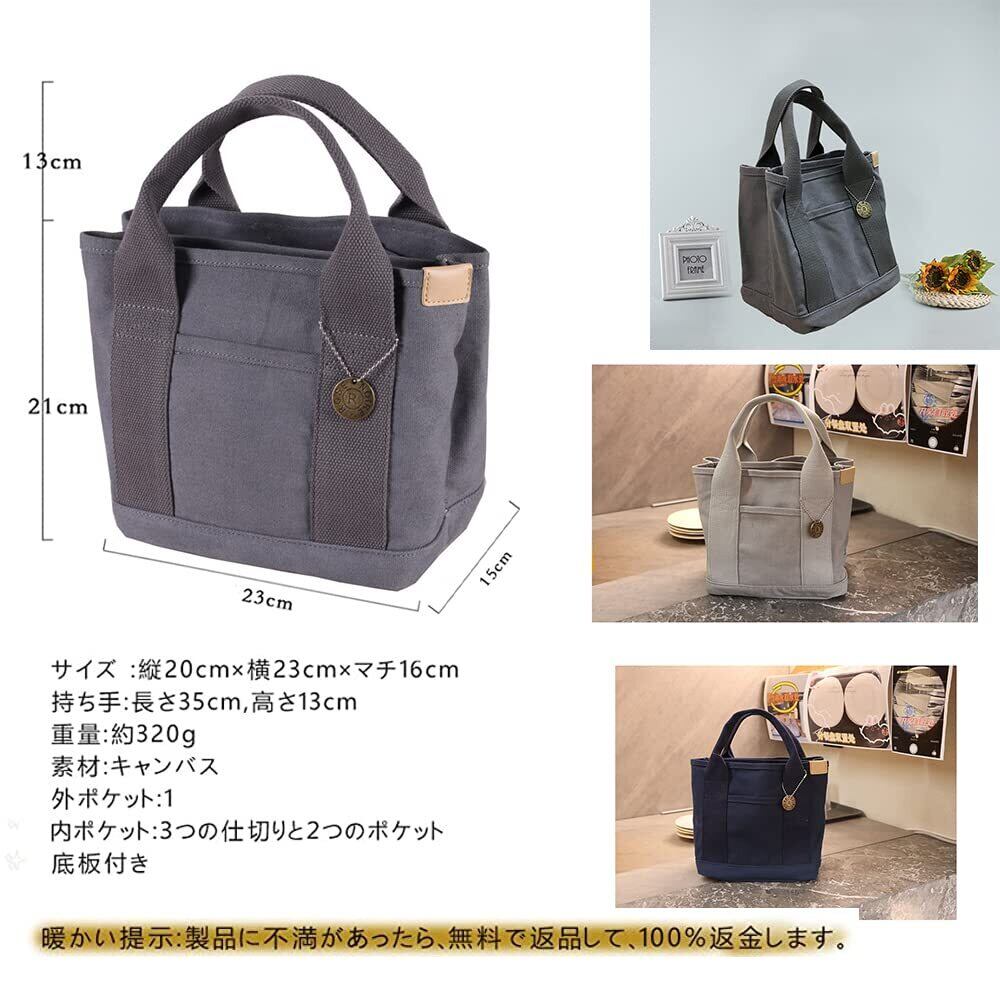 ヒント:外にはもう一つのポケットがあります。鍵、携帯などを置くことができます。ミニ トートバッグはお弁当箱やペットボトルがすっぽり入り、ランチバッグにピッタリ。