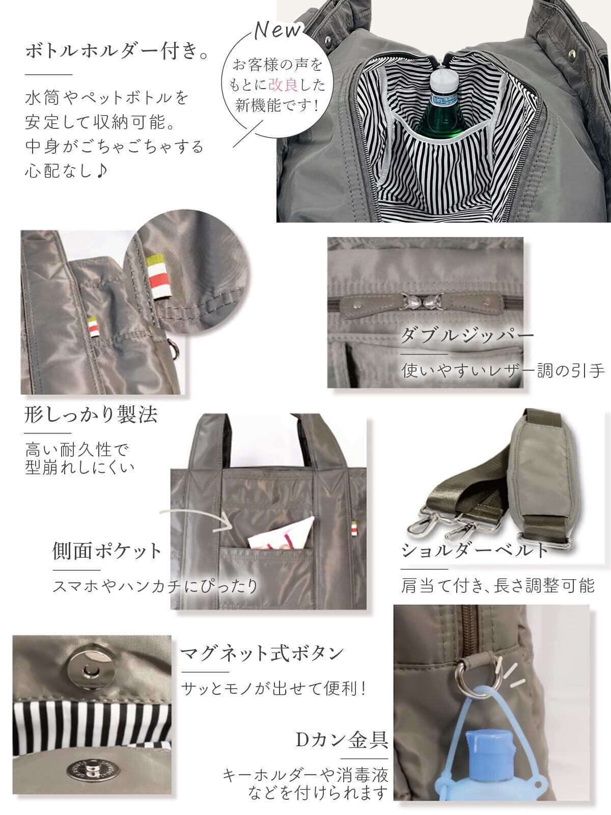 【新着商品】[アンコール] 現役ママのこだわり 上質ナイロン 『高見えママバッグ 軽くて大容量』 トートバッグ マザーズバッグ 2WAY ショルダーベルト付 撥水 カジュアル 旅行 出産祝 ジャパン