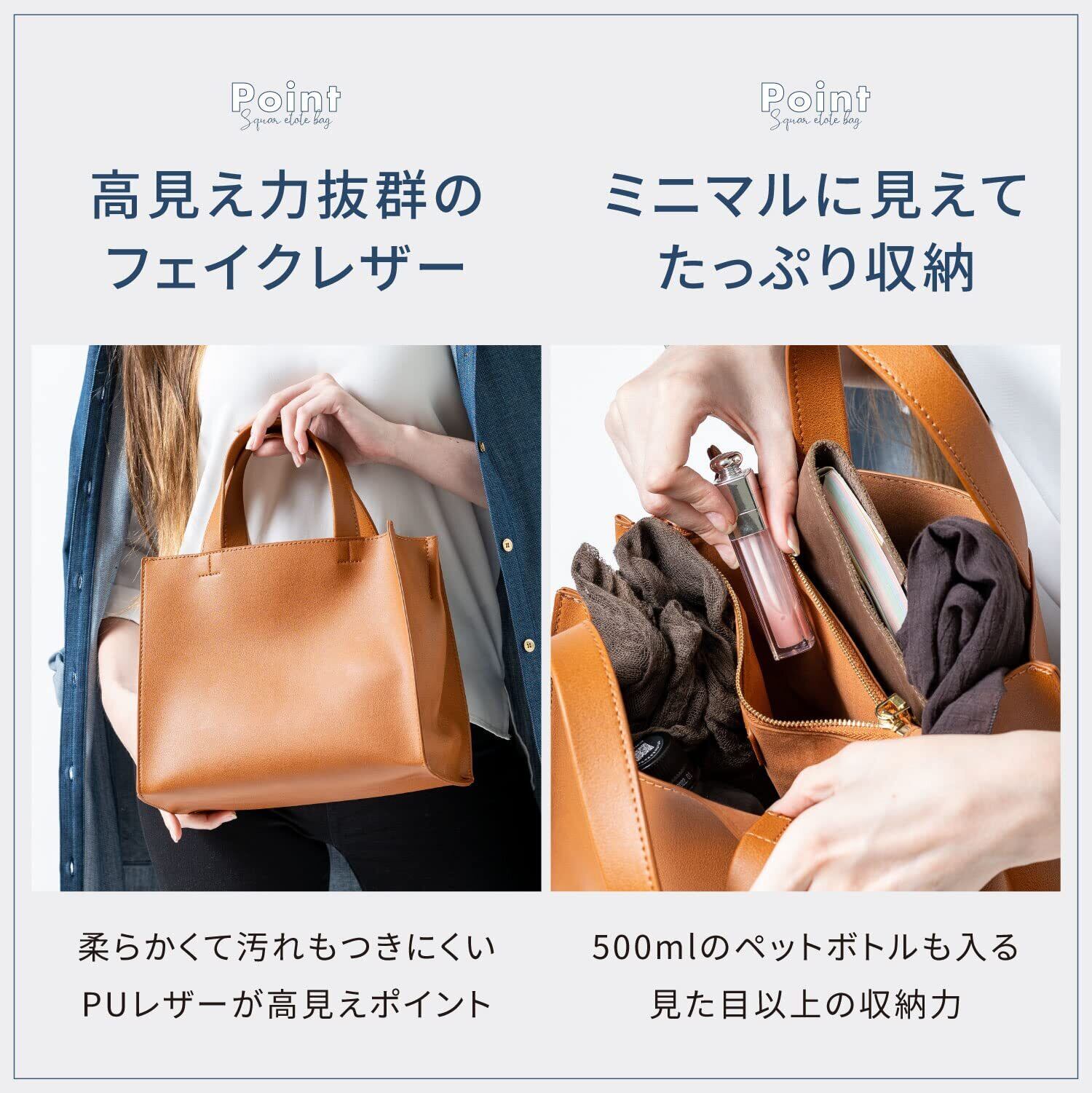 【デザインと機能性を兼ね備えたシンプルな高見えミニトート】大人気のスクエアトートがリニューアルして再登場。どんな場面にも合うシンプルなデザイン、お出かけにもビジネスシーンにも嬉しい収納力。 シーンを選ばず普段遣いはもちろん、高見えなのでパーティーや、母親の卒園式、卒業式、入学式などのドレスやパーティー、フォーマルシーンにも◎ 小さめながらたくさん入ります。定番のデザインで飽きがこないのでヘビロテして何個も持ちたいアイテムです。 素材や機能面など、たくさんのこだわりを詰め込んだ一品です。試作を重ね製作した自信のトートバックは使いやすさ抜群。