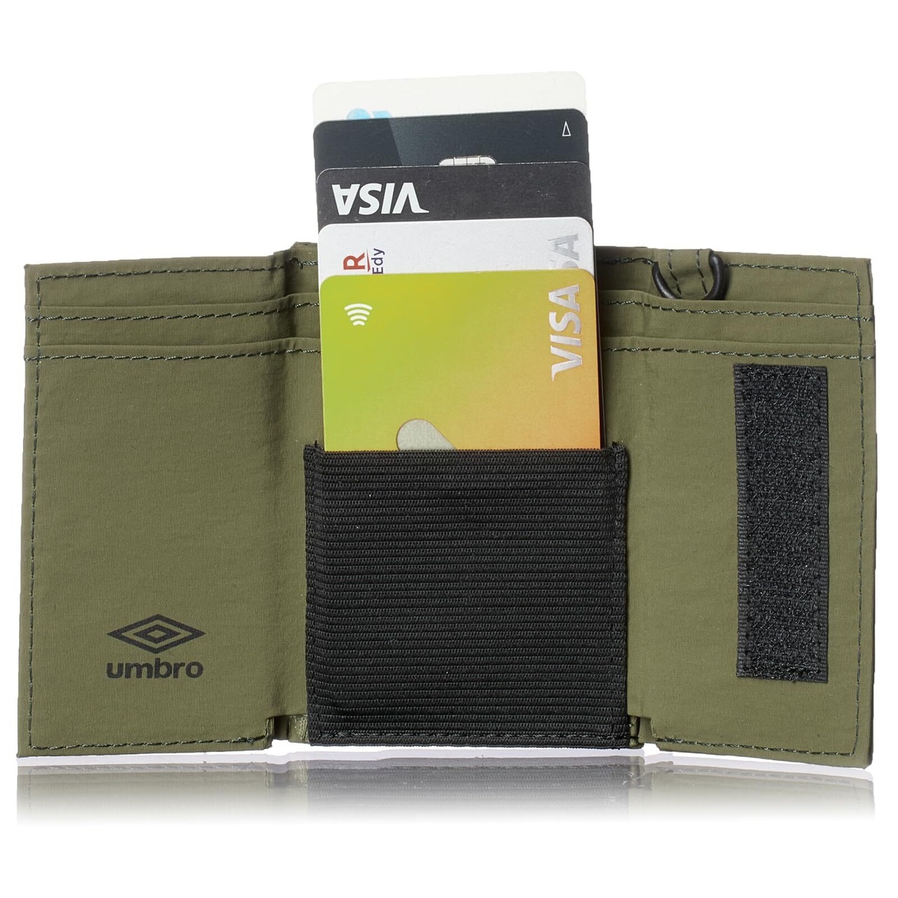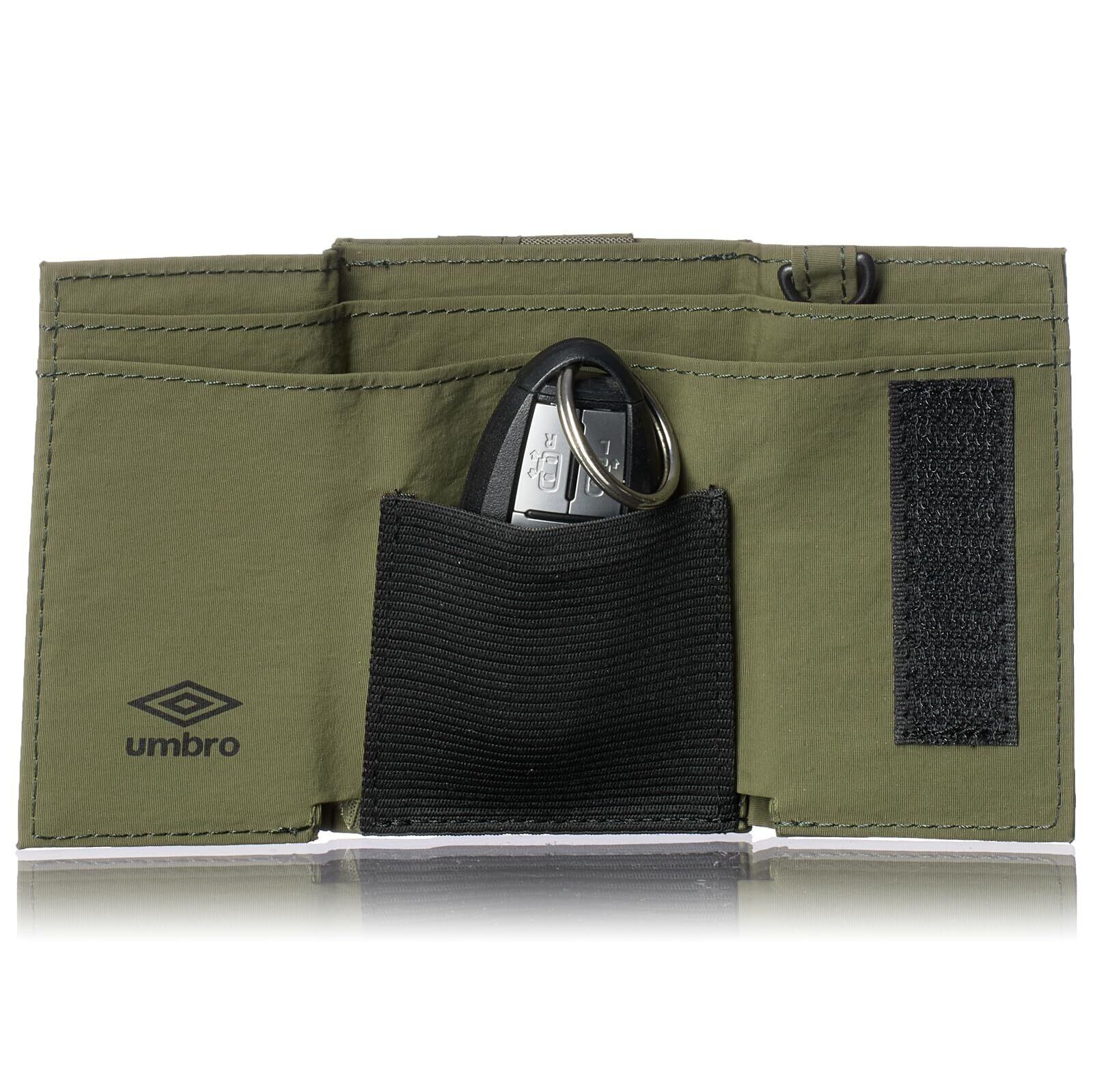 【特価商品】[アンブロ] 三つ折り財布 メンズ レディース ネックストラップ付き 軽量ナイロン コンパクトウォレット ミニ財布 小銭入れ付き Khaki