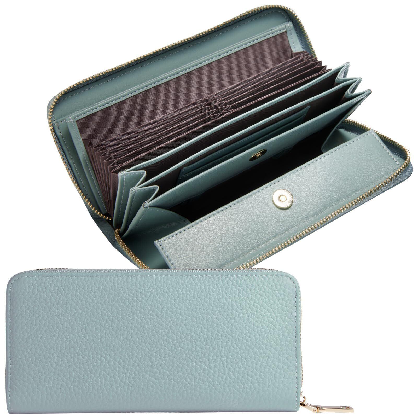 [NEESE] 長財布 コインスルー レシートと小銭を自動で仕分け 本革 ボックス型コインケース 財布 レディース 多機能 ウォレット 金ファスナー 母の日 ギフト 大容量 (b.アイスブルー)