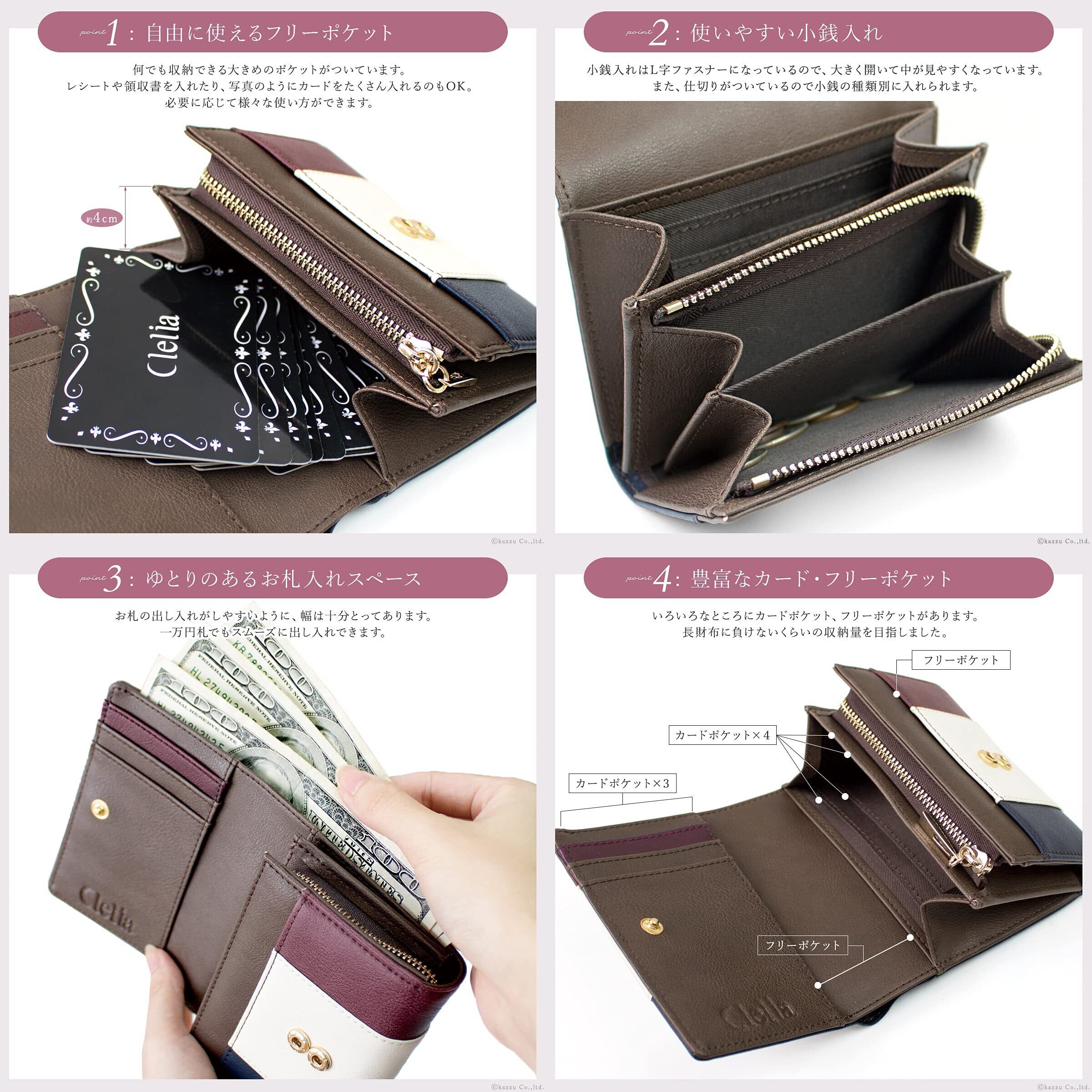 [クレリア] 折り財布 レディース 大容量 二つ折り トリコロール Riberteシリーズ 【CL-17075】 (ブルーミスト)