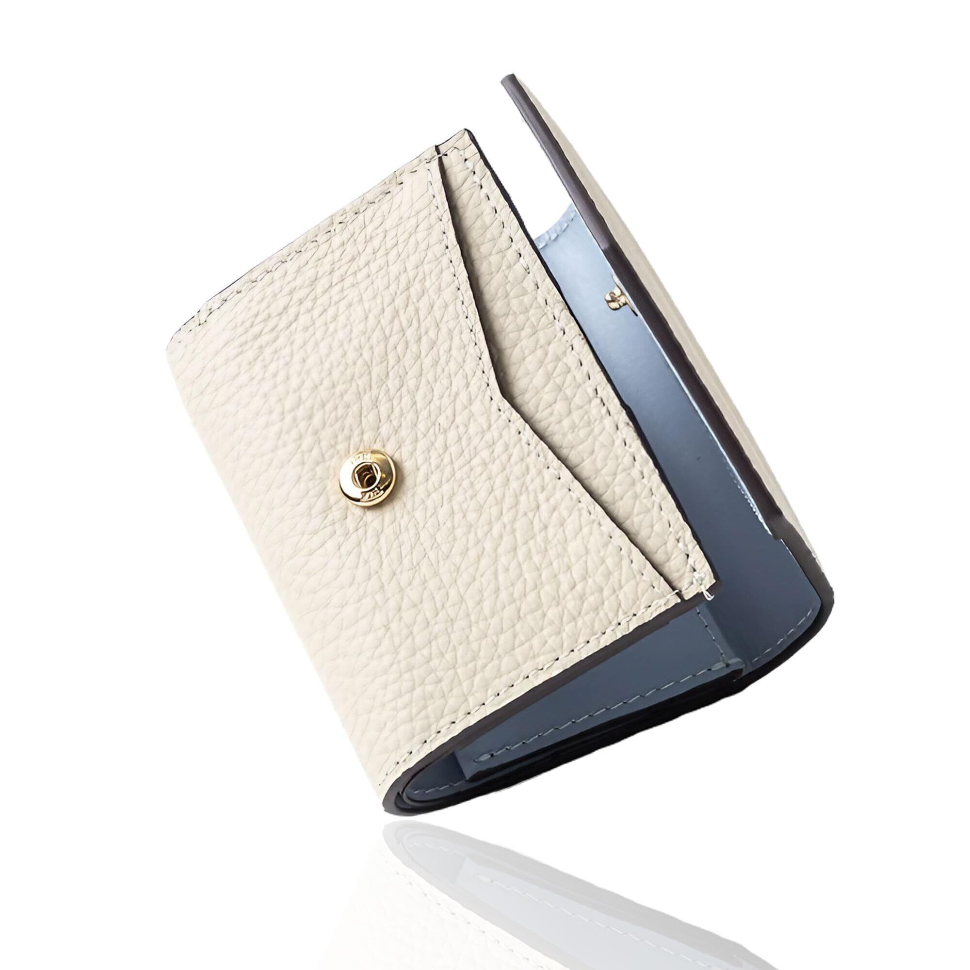 [ GRAV ] 【 柔らかく手なじみの良い本革x高見えバイカラー 】レディース 財布 3つ折り ミニ財布 上質 本革 小銭入れ 軽い 軽量 大容量 札入れ お札入れ カード入れ コンパクト (3つ折り財布 ) (アイボリー×ライトブルー)