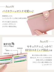【スキミング防止・RFIDブロック】 内部に磁気干渉防止素材を挟み込み、カード情報を守るRFIDブロック機能を搭載。見た目だけでなくセキュリティ面でも安心してご使用いただけます。