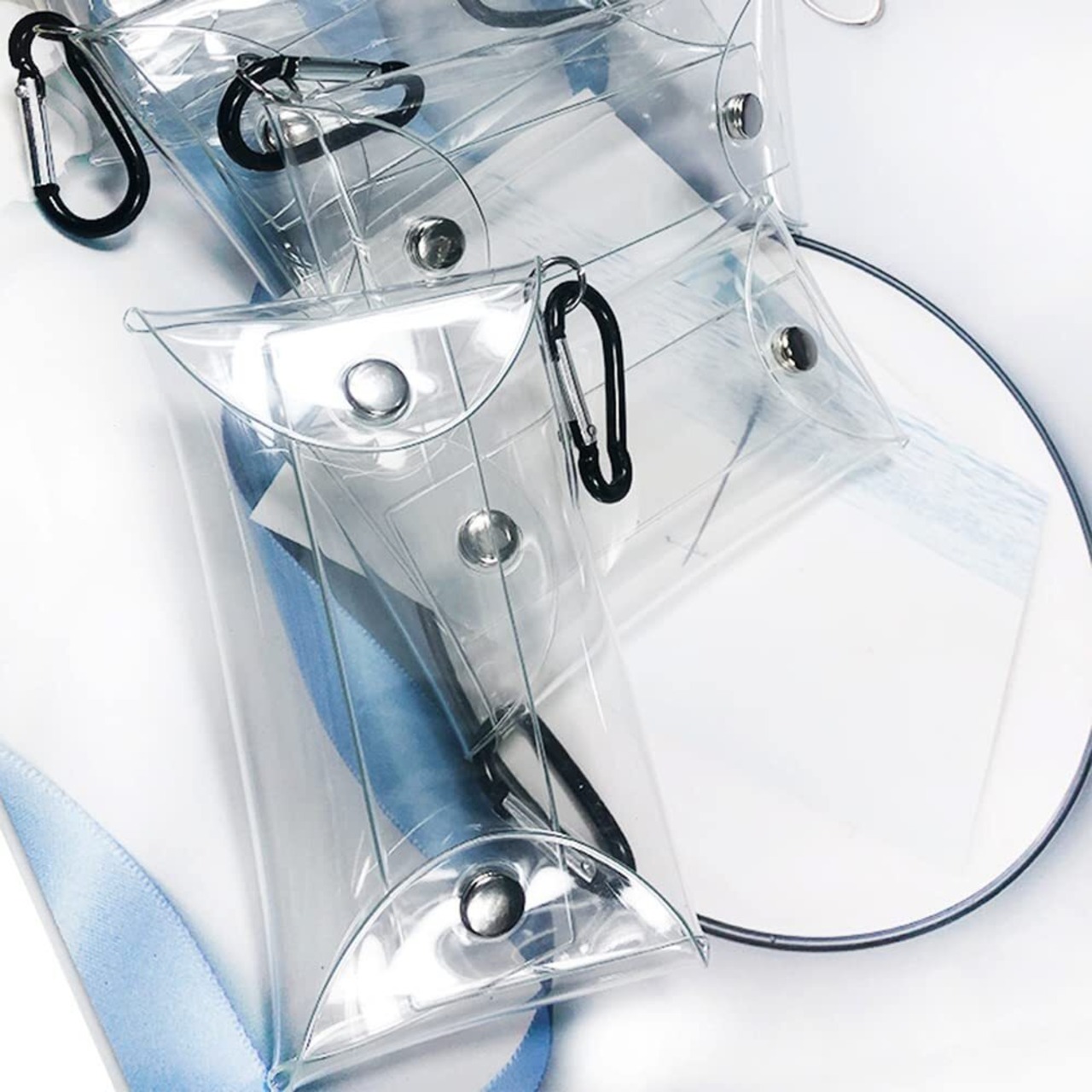 【在庫セール】サムコス 小銭入れ 透明 4個セット ミニポーチ ウォレット ミニ財布 キーケース コンパクト 可愛い カラビナ付き 洗える 携帯用 取り出し便利 (透明4点)