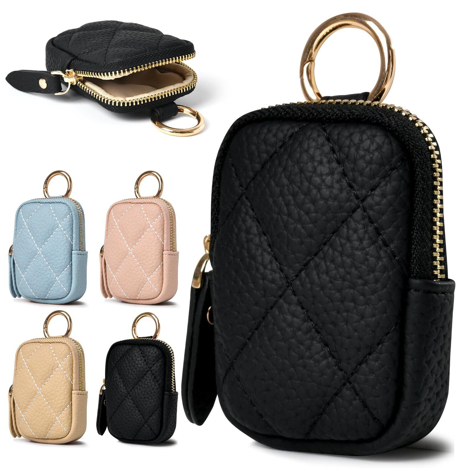 小銭入れ レディース コインケース メンズ キーホルダー付きイヤホンケース カラビナ付き イヤホンケース イヤホンポーチ ミニ財布 コンパクト レザー製 持ち運び便利(Cブラック)