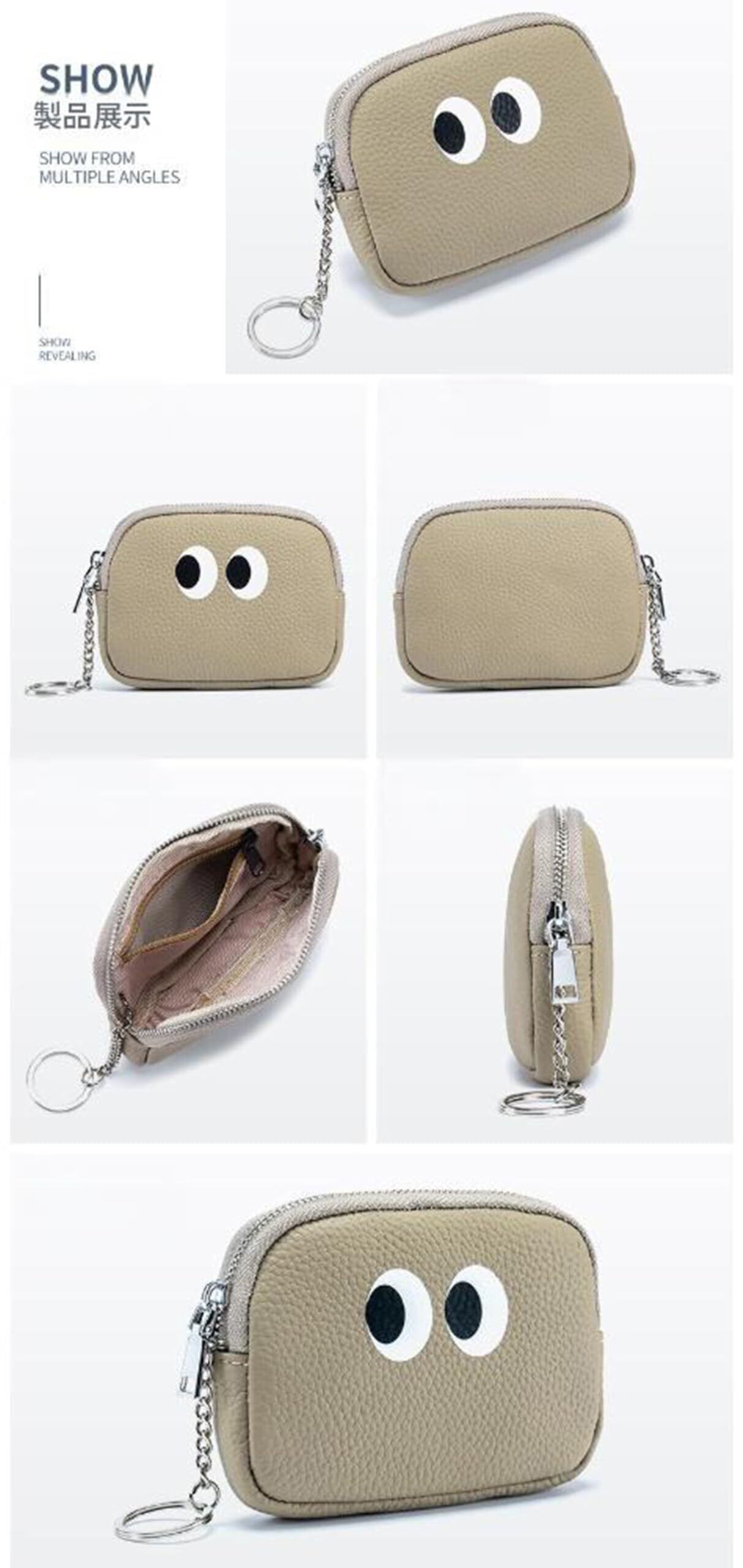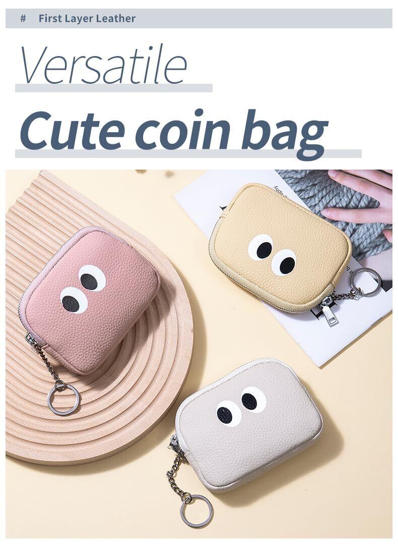LOHGOU 本革ミニコインケース 可愛い小銭入れキーホルダー付き 小さな小銭入れ レザーコインケース 軽量 アクセサリーバッグ